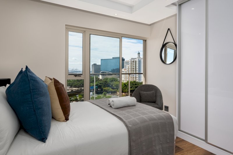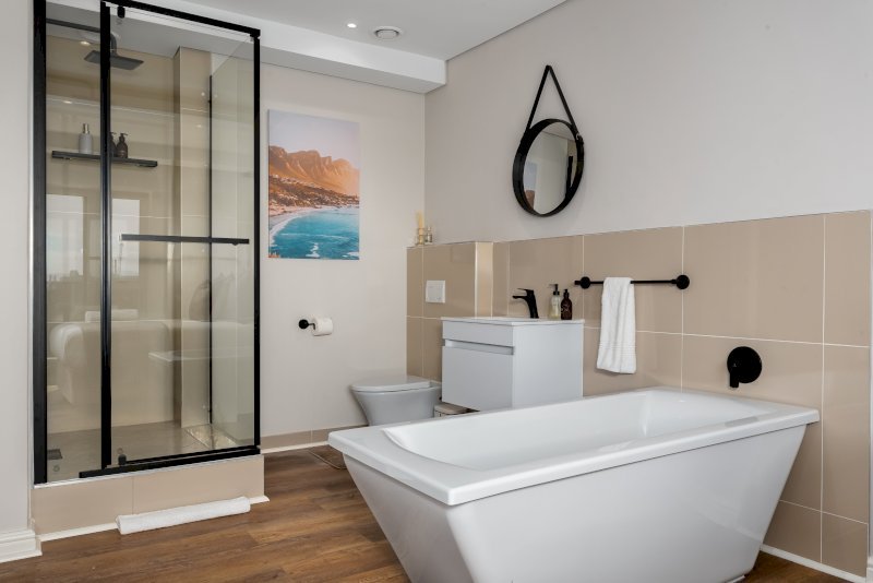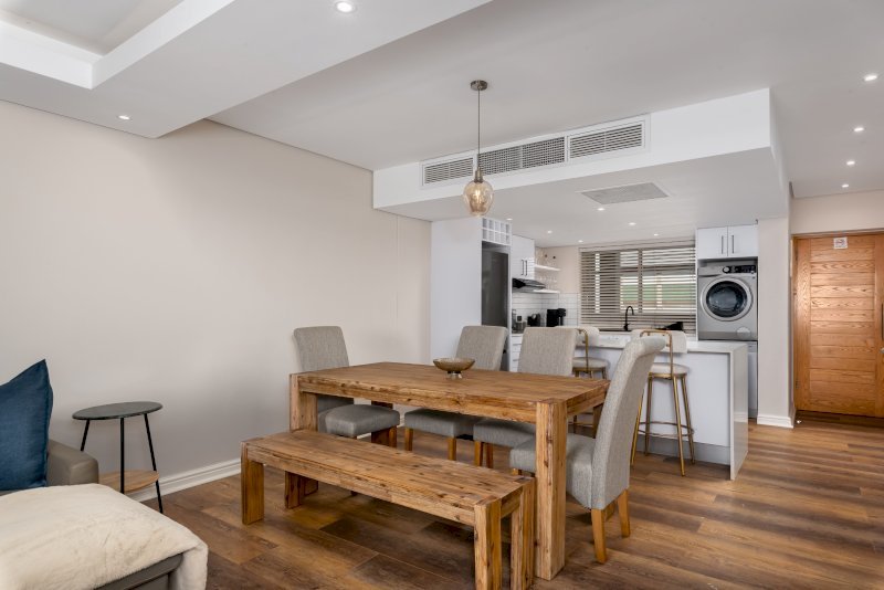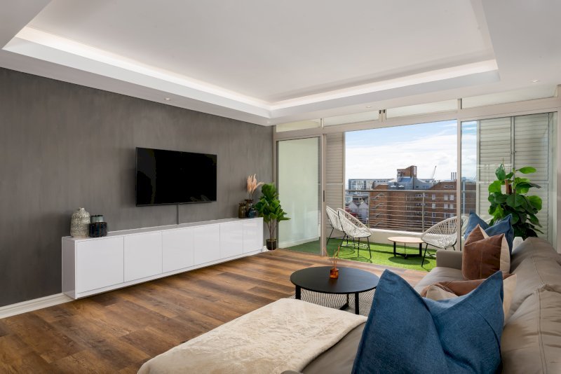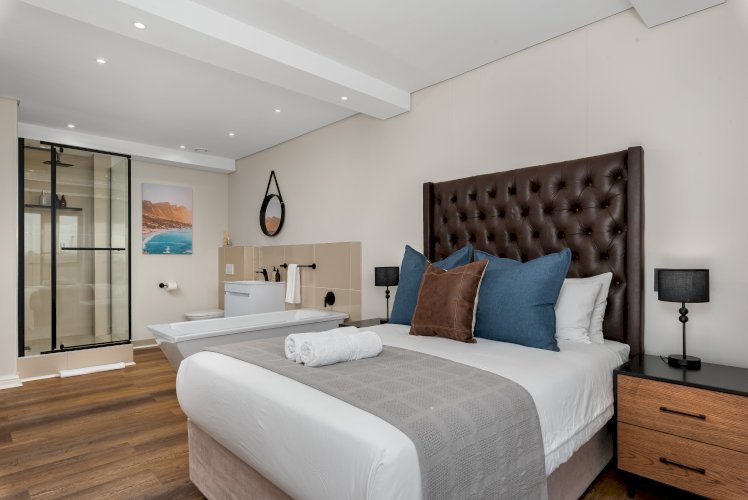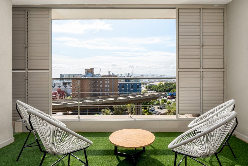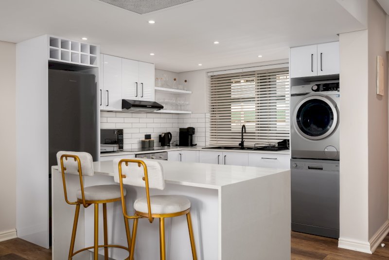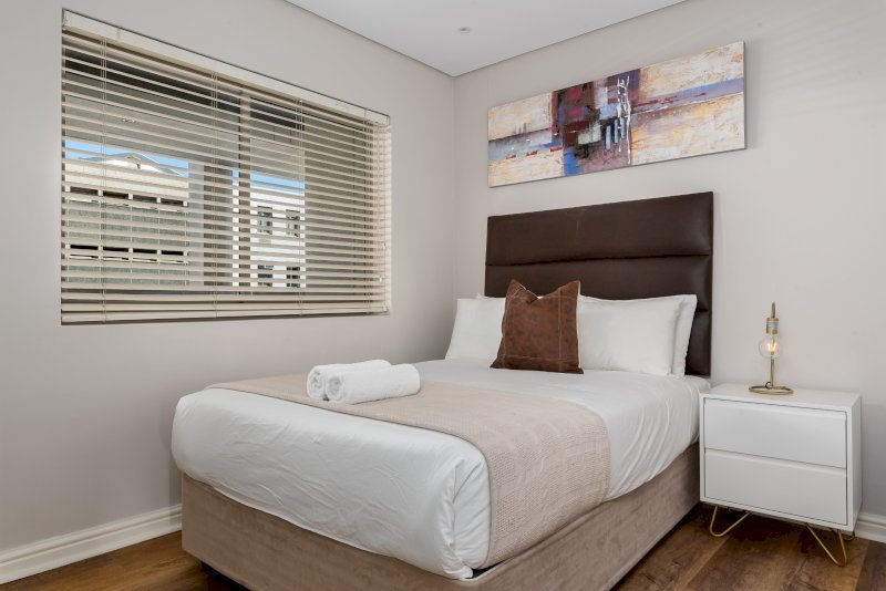 Enjoy the beauty of Cape Town from this gorgeous apartment in the heart of De Waterkant. Look across the city through floor-to-ceiling windows and relax in the open-plan interior. The balcony has floor to ceiling stacking windows which open onto incredible views of the harbour.The master bedroom has a queen-size bed. It has its own linked balcony section and en suite bathroom. The second bedroom has has a queen-size bed with a standalone bathroom right next door.