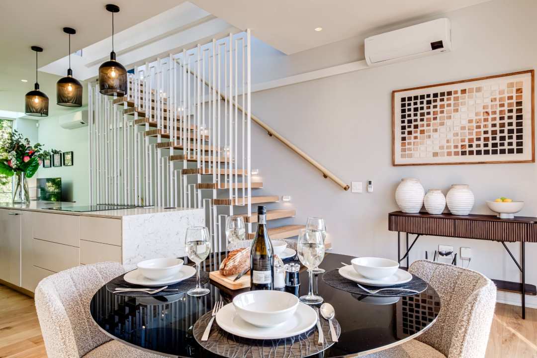 De Waterkant Views is designed for effortless urban living. The open-plan lounge, dining, and kitchen areas are bright and inviting, with air conditioning, modern appliances, and thoughtful finishes throughout. Sliding doors lead to a deck that captures sweeping city and harbour vistas. Outside, guests can enjoy the pool, outdoor dining, and additional seating with bar dining—perfect for entertaining or unwinding after exploring Cape Town’s vibrant streetscape.