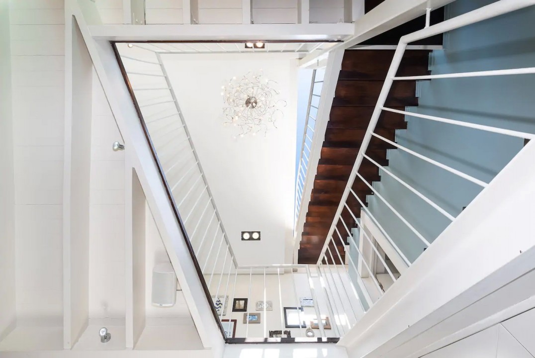 A central atrium opens up to the staircase from the ground through to the rooftop terrace accessed via an automatic glass sliding roof.