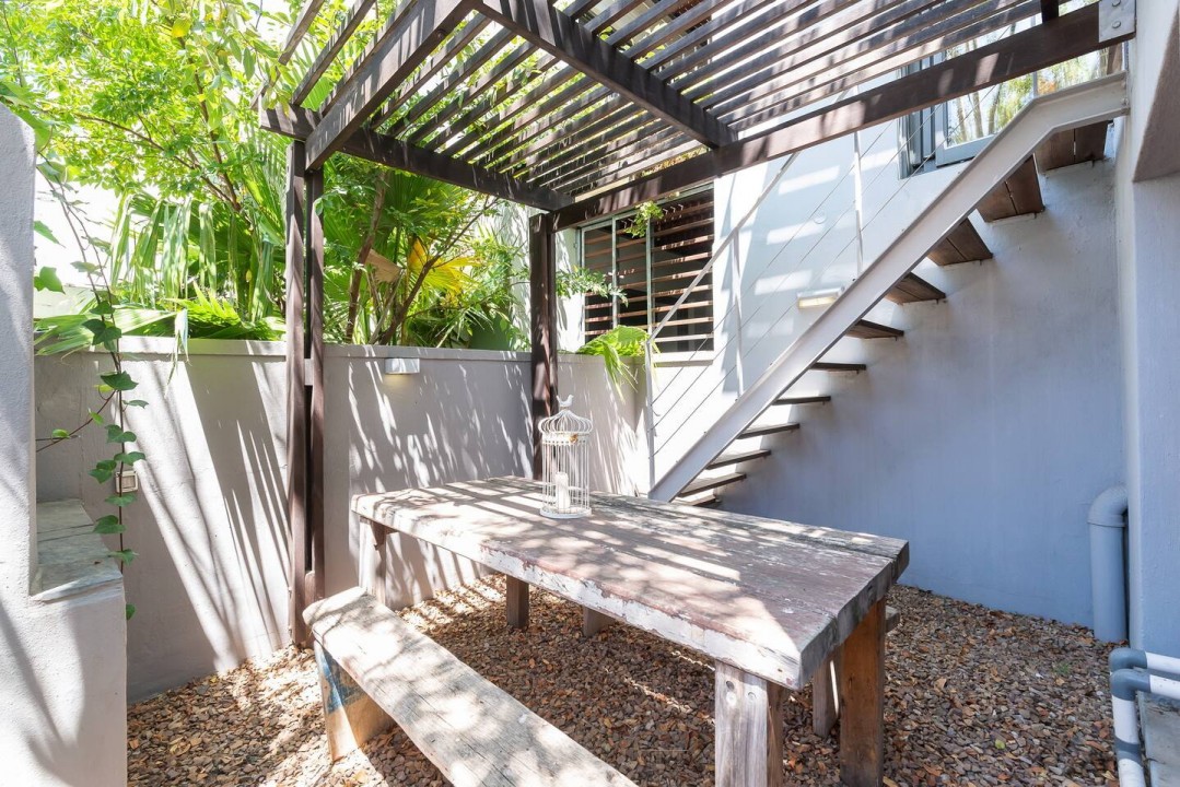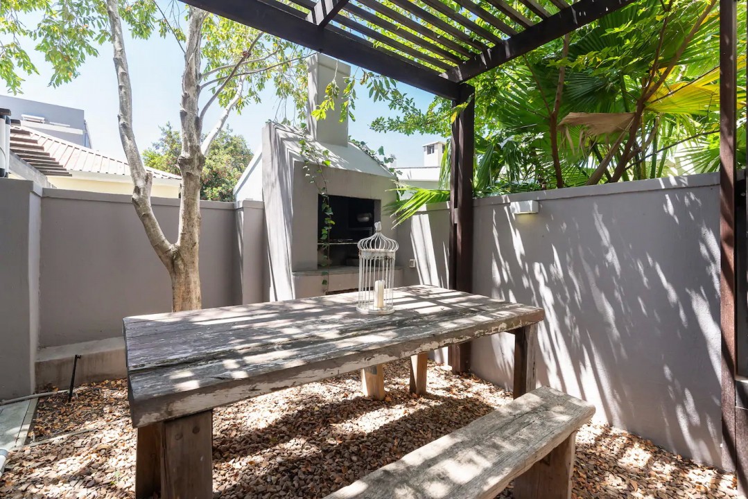 The dining area comes complete with a large dining table, inviting you to enjoy a home cooked meal or a braai made on the built-in braai unit in the courtyard garden.