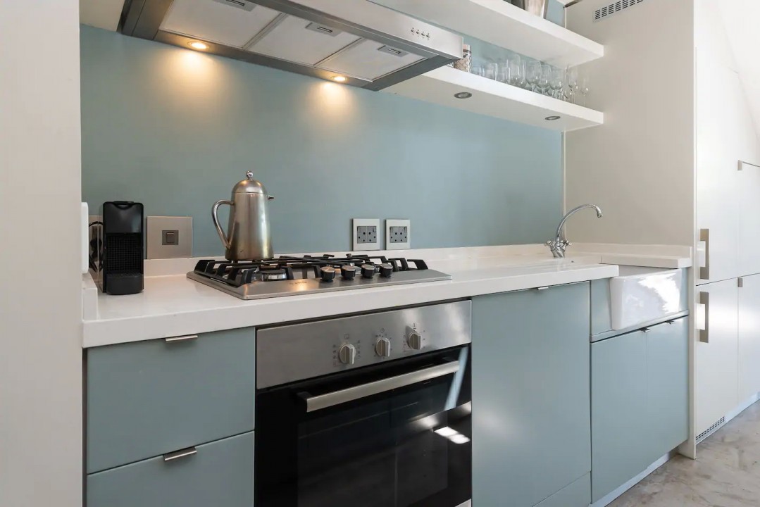 The ground floor welcomes you with its open-plan contemporary living space that includes a state of the art kitchen with gas stove, integrated appliances and ample cupboard space.