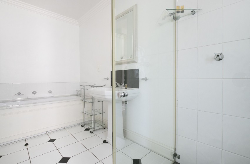 Each bedroom is spacious and radiates beauty and elegance. If necessary, a double bed may be constructed from the two single beds in the first bedroom and a comfortable king-sized bed can be easily made from the two three-quarter beds in the second and third bedrooms. All rooms include air conditioning and en suite bathrooms with a shower, bath and toilet are accessible from all bedrooms.