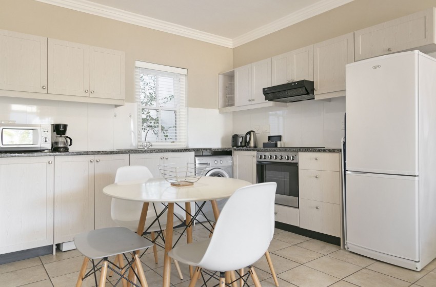 De Zalze Winelands Golf Lodges 18 is a single-bedroom holiday apartment bursting with charm. Light interiors are elevated by bursts of colour – adding to the pre-existing appeal of this apartment. The kitchen area has more than enough cupboard and working space to meet your culinary needs, while all the required kitchen appliances are provided to ensure your stay is nothing short of comfortable. The open-plan dining/living area houses a dining room suite with seating up to four guests, while a more than ideal amount of furniture lines the lounge. The smart TV with internet facilities can provide you with a great way to unwind after a long day of sightseeing.