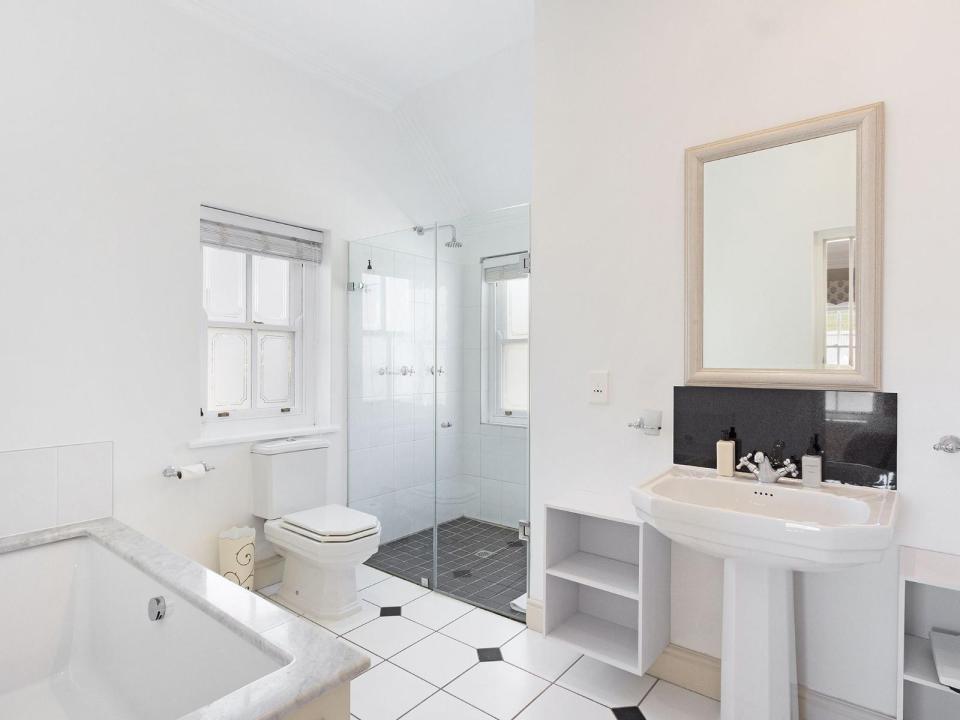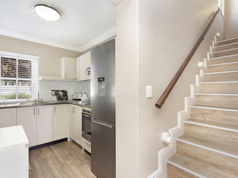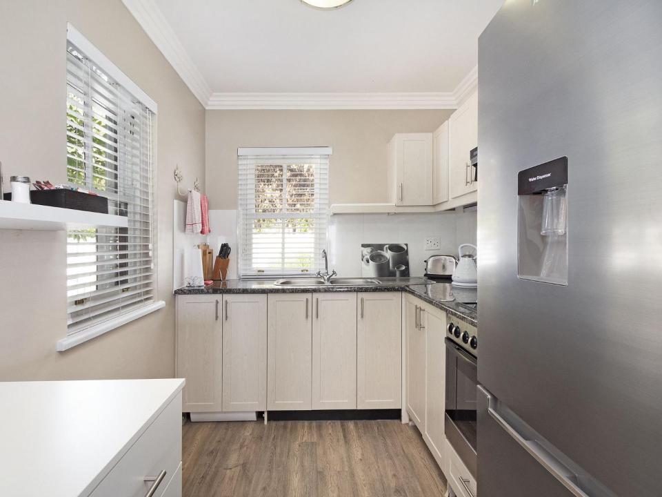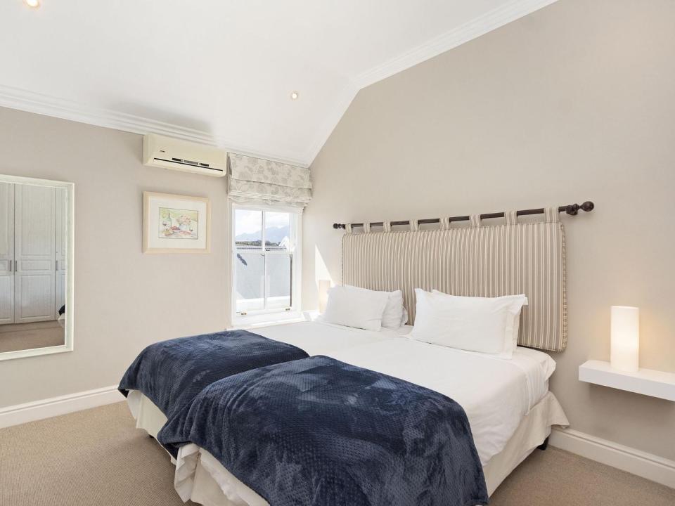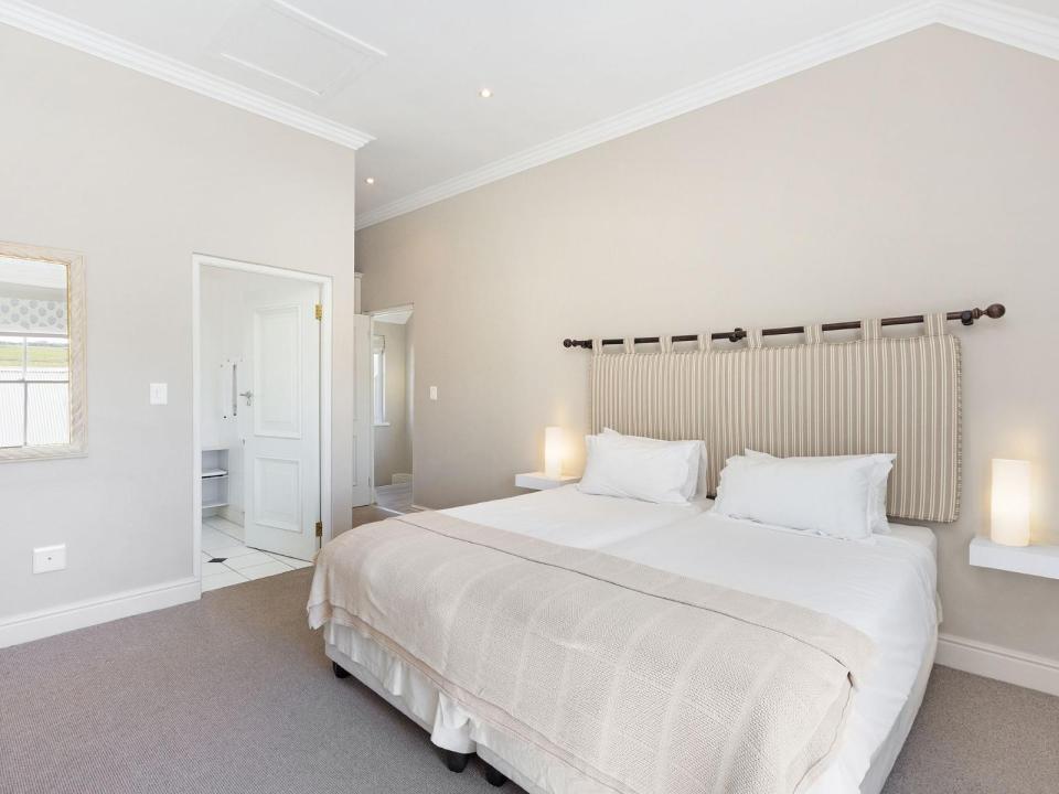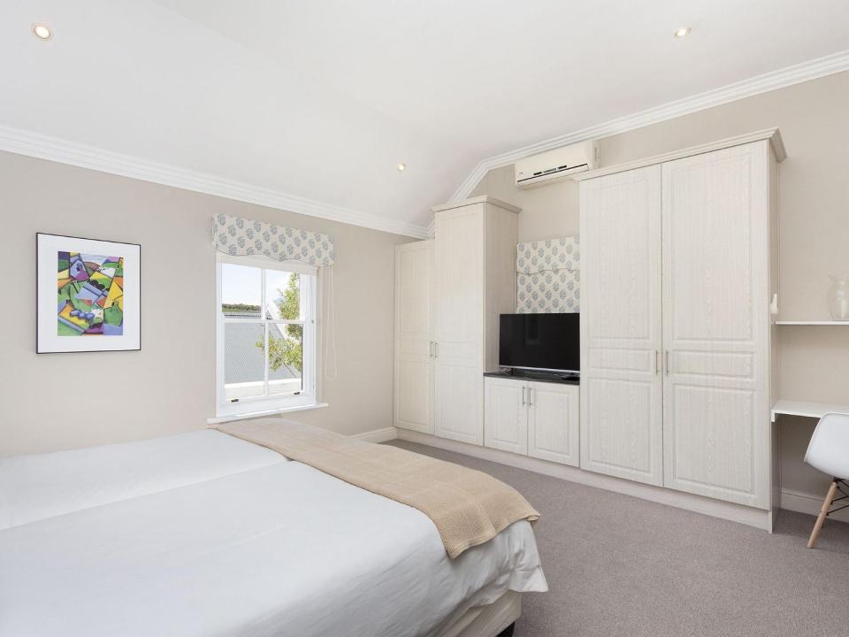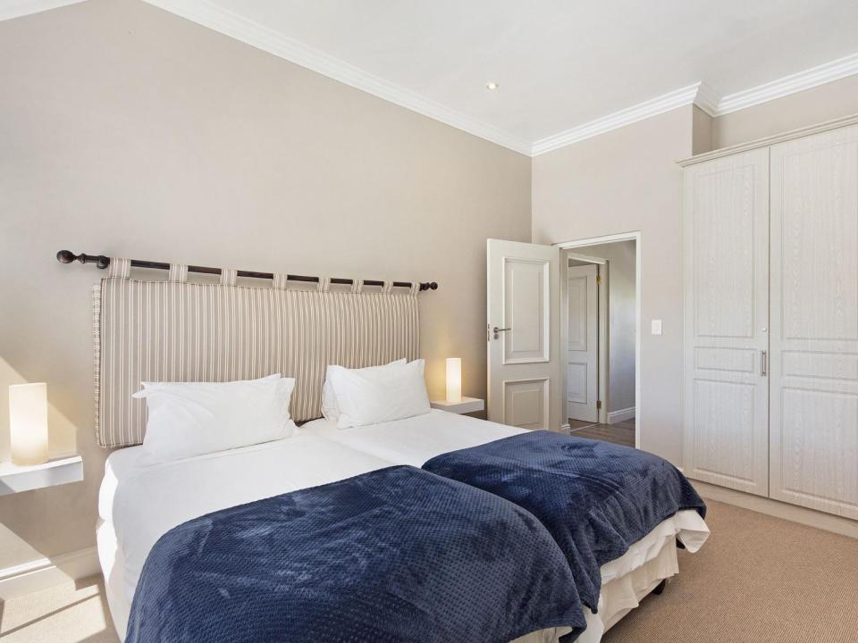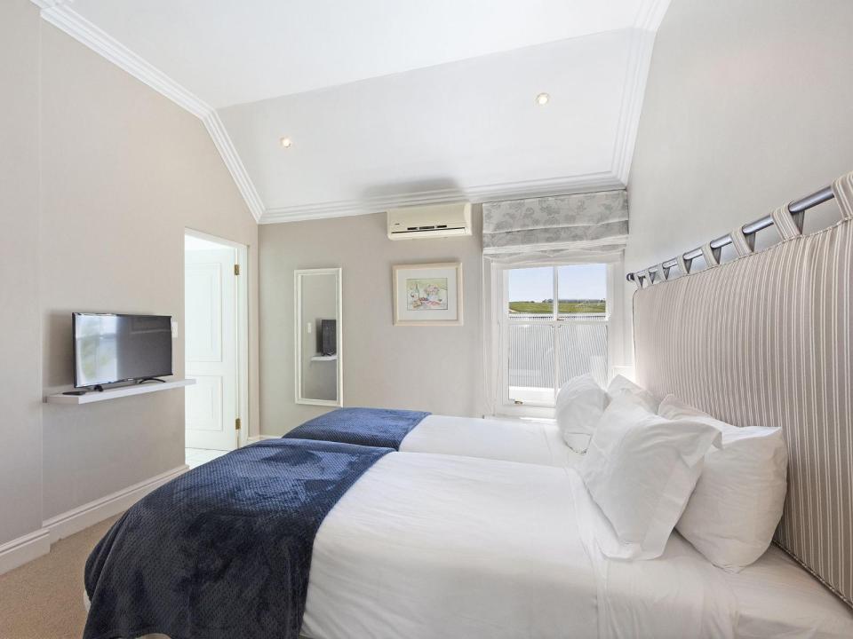 This 4-sleeper lodge has 2 air-conditioned bedrooms. The 1st has 2 three-quarter beds and the 2nd has 2 single beds. Each room has an en-suite bathroom with a shower and 1 has a bath as well. The fully equipped kitchen and lounge are open-plan.