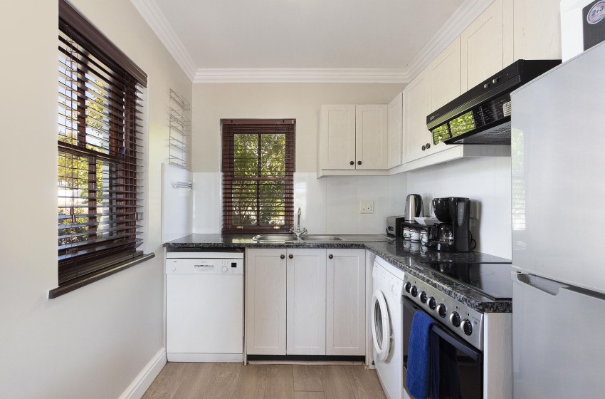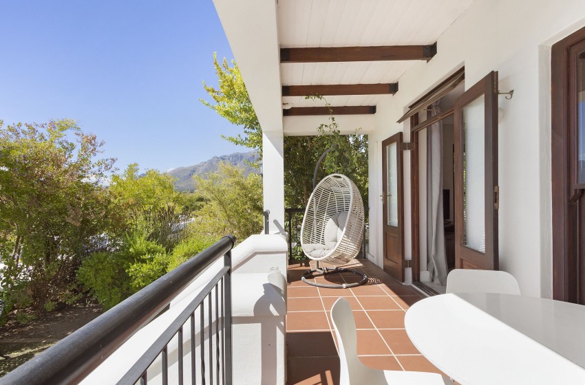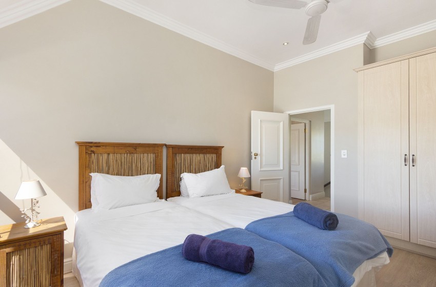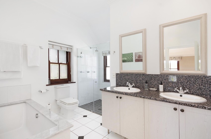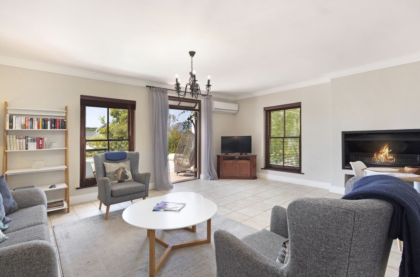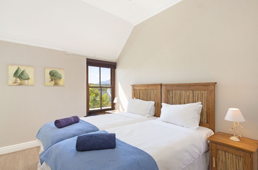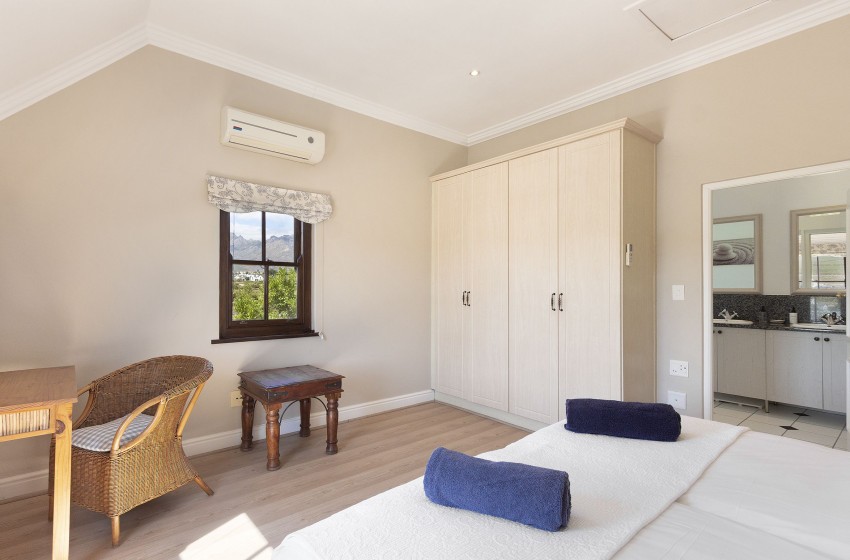 Both bedrooms are roomy and have a sophisticated, modern ambiance. If needed, both bedrooms’ two three-quarter beds may be converted into a comfy king-sized bed. The first room has a ceiling fan and the second room has air conditioning, while both bedrooms have access to en-suite bathrooms. You can see the beautiful Winelands as soon as you wake up thanks to the windows in both bedrooms.
