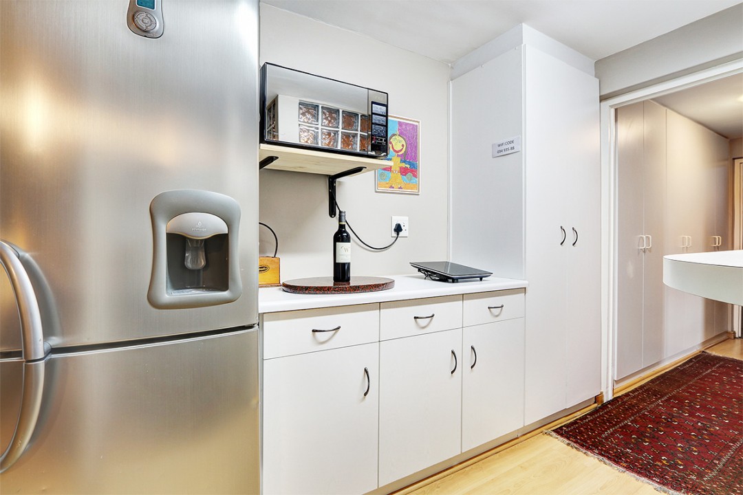 While there are plenty of restaurants situated close by, guests can also make their own simple meals in the kitchen, which includes appliances like a 1 plate stove top, microwave, fridge and kettle.