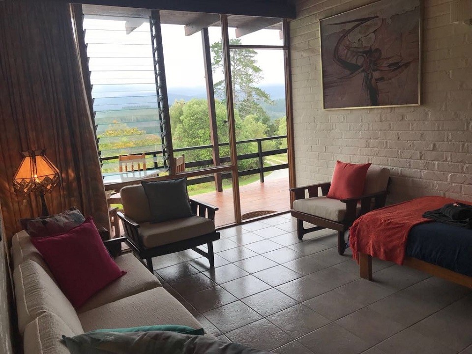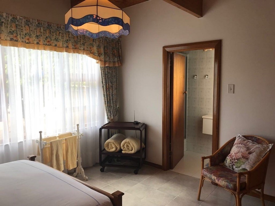 Bird Room: Front mountain facing with queen size bed, en-suite bathroom with shower, ample cupboard space (with safe), dressing table, large windows with garden & mountain views, private entrance off the balcony.