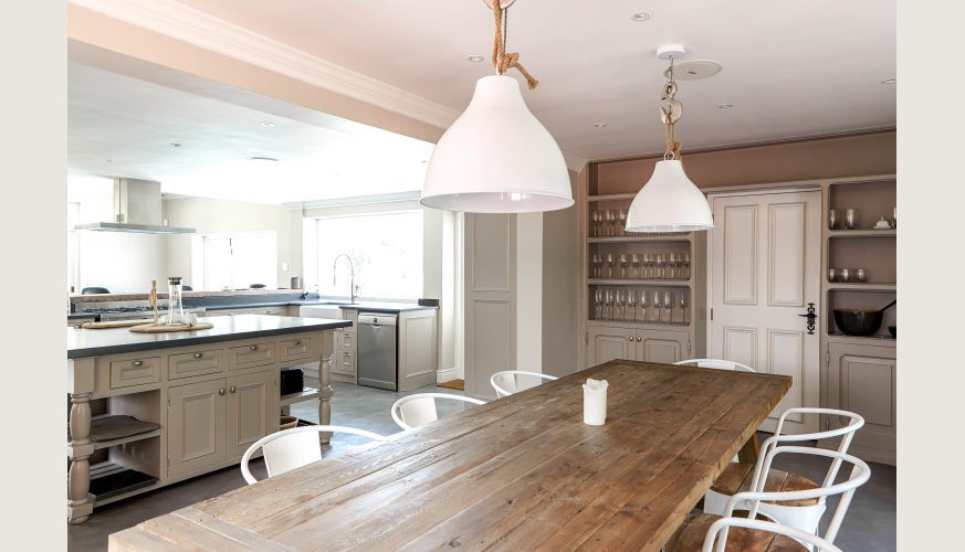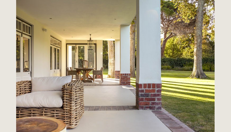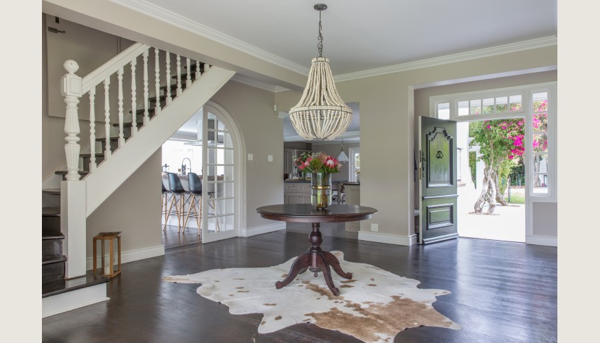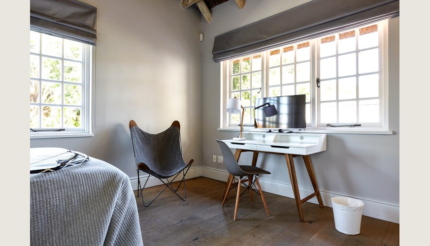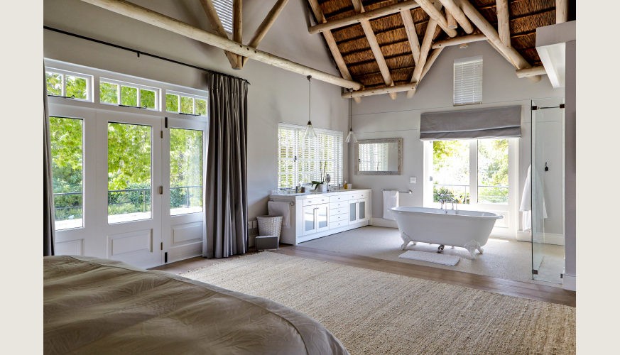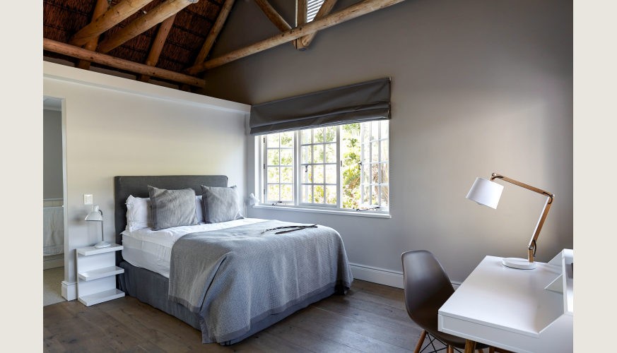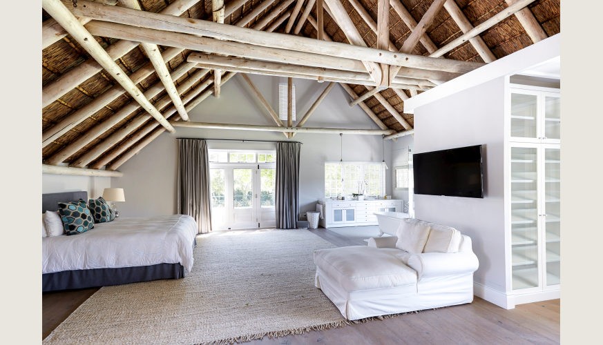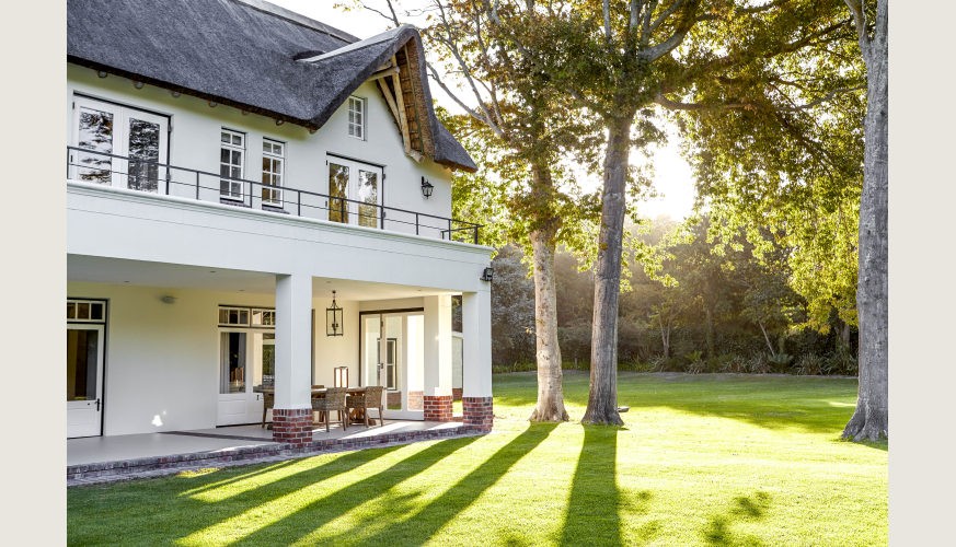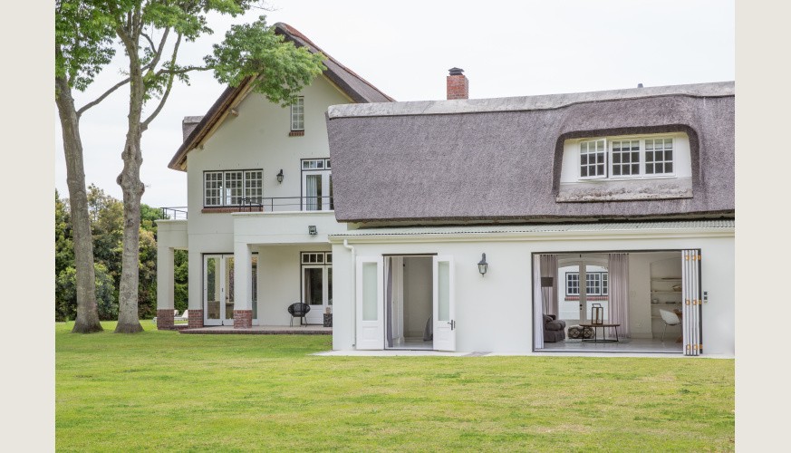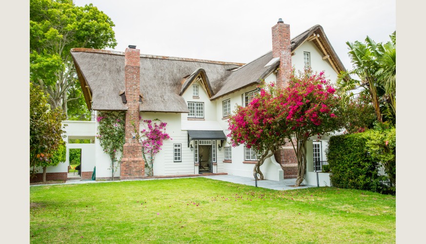 If we were to leave the beautiful valley of Hout Bay, Klein Constantia is the place we would choose to make our home. Denneboom is in Klein Constantia and in the heart of the Constantia winelands. A large beautiful thatched home with plenty of space for everyone. An awe-inspiring, long and winding drive way through traditional old style pillars gives the first glimpses of the house. Large sprawling lawns for children to play, an enormous swimming pool for fitness fanatics and families alike. Both the indoors and outdoors lend a hand to entertaining with plenty of space with shade for long lazy shared meals paired with locally sourced wines from the neighbouring farms.