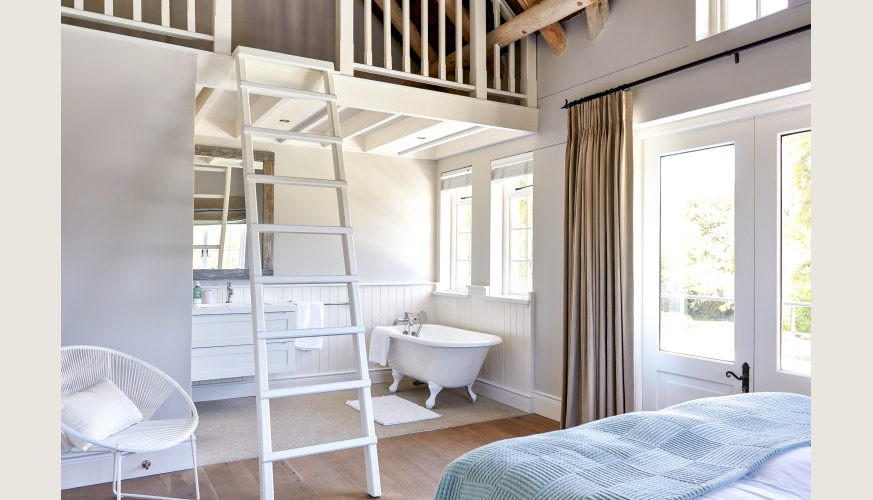 The interior is cool and chic, modern pieces in light charcoals and off white linen. A large kitchen with a long dining table to gather around with a fireplace for cooler days. The kitchen is great for making feasts together. All the bedrooms are ensuite and nothing is compromised. The master bedroom is ginormous!! With a beautiful bath for soaking away the stresses. Take your bikes along and enjoy the expansive space, quiet streets and then take the night off and visit one of the nearby gourmet restaurants for an indulgent meal and superb local wine.