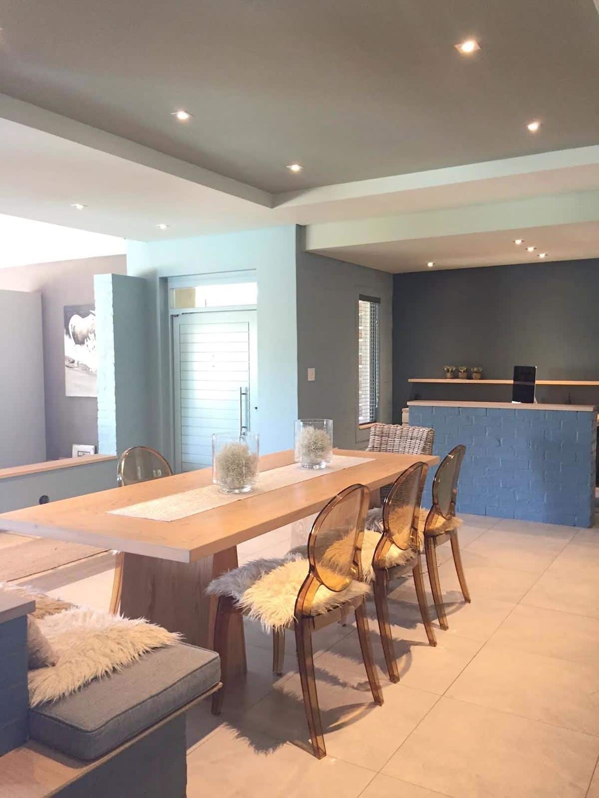 The main living area consists of a very stylish kitchen with top-of-the-range Smeg Appliances, a breakfast bar, and dining room. You then step down into the TV room with full DSTV and a formal lounge. These open-plan rooms lead onto the undercover patio and pool area – tailor-made for relaxation and soaking up the beautiful views.