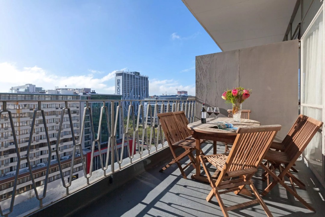 You can also access the balcony from the living room. Being out on the balcony you feel like you are right in the middle of all the unique beauty but yet still in your own privacy and from prying eyes. Comfortable patio furniture to enjoy on those warm summer nights and breathtaking sunrises Cape Town is so famous for. Beautiful views of surrounding buildings and is great for the hidden architect inside you.