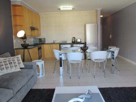 Large modern 1 Bedroom self catering apartment at Dock Side situated in De Waterkant, walking distance from the CTICC, De Waterkant night life and city center. Also situated close to the V&A Waterfront, Table Mountain and beaches. Enjoy stunning views from your apartment over the city, harbour and Table Mountain.