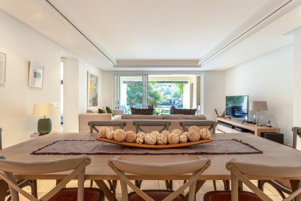 This gorgeous, modern two bedroom apartment set on the ground floor with a lovely large terrace overlooking the marine waterways. Both the master and the second bedroom have lovely views and access to the terrace, so perfect for a family, or two couple’s sharing.