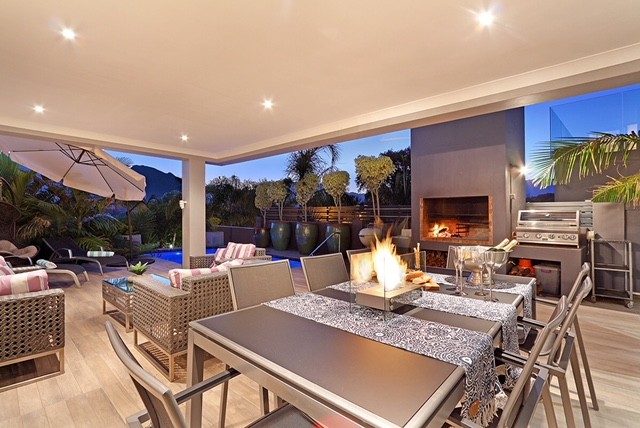 This Cape Town Constantia 4Bedroom Holiday Home Finely Appointed With Heated Pool. This Constantia holiday home is situated in the leafy Southern Suburbs with heated pool (summer) and lovely entertainment area. You will find the living area leading to the pool and entertainment area on the ground floor.