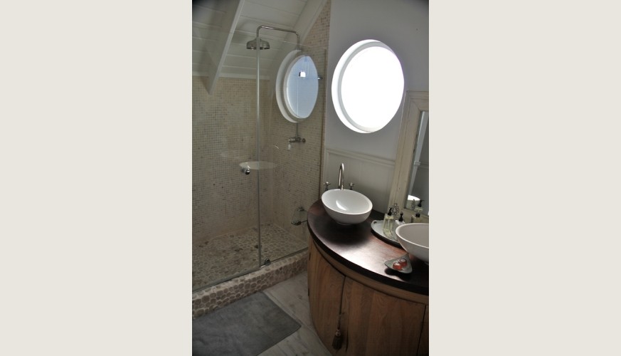 1 king bedroom, en-suite shower and bath – doors open onto the upstairs deck