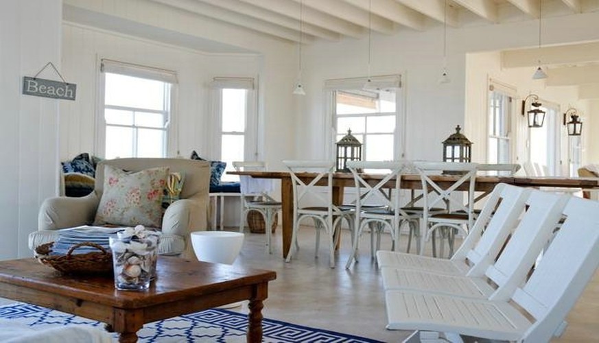The interiors are beautifully decorated in the colours of the beach in front of the house – soft blues, smudgy greys, off white and crisp white linens, all textures to love in a classic West Coast retreat. It has a great prep area in the kitchen, big dining room table for lovely family feasts and window seats to curl up in and read your books or fabulous decks to spill out onto the beach with big cushions and Adiron deck chairs to gaze at the ocean.