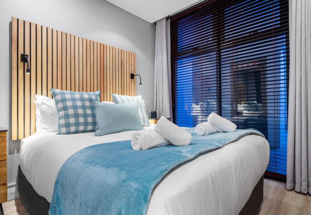 Guests have exclusive use of the apartment and balcony, plus access to Eden on the Bay’s beachfront lawns, restaurants, cafés, and boutique shops.
