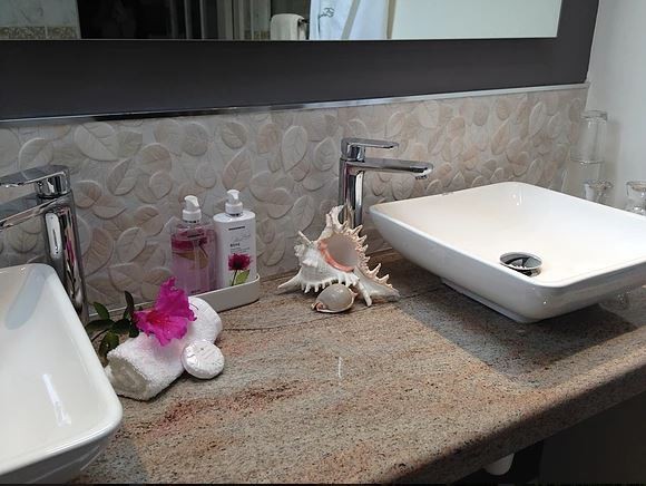 A great place to relax, and watch the birds in the garden, whilst sipping a glass of wine during the lovely summer evenings. The separate new modern granite kitchen has a two plate ceramic hob and solar dome oven, refrigerator and is fully equipped. – It can be booked as either B&B or self-catering. The newest option for this suite is an adjoining bedroom (Mountain View Room) and bathroom, so that it can become a two bed roomed / two bath suite for a family or group of friends. This option is available on request.