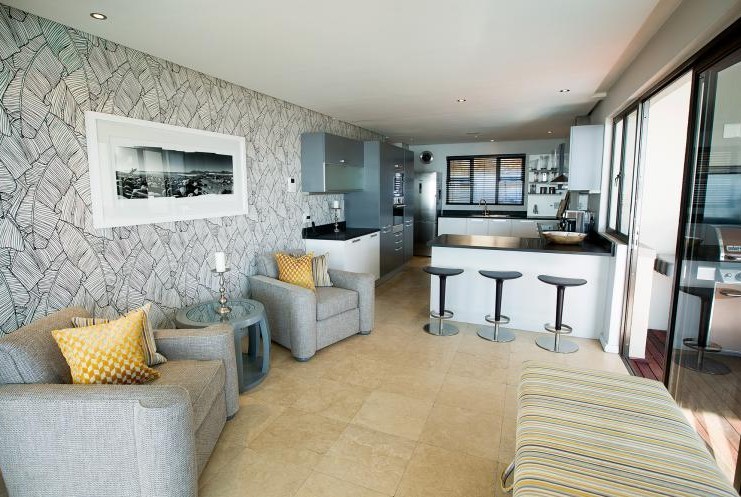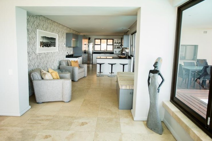 The front terrace is perfect for sundowners but even if the Cape wind is blowing, there’s ample space in the lounge for everyone to be indoors while enjoying the same view.