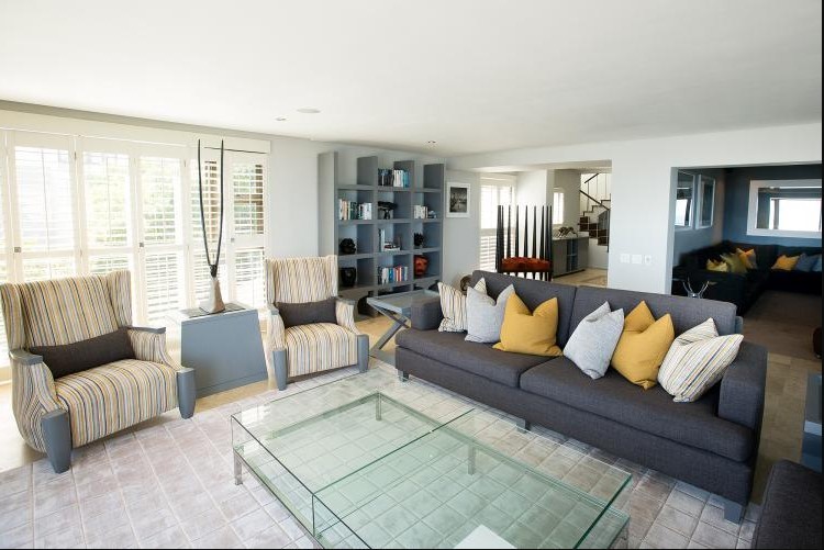 This characterful modern villa is accented with warm, welcoming colours, sculpted African artefacts and large, colourful oil paintings that offset its clean, contemporary lines.