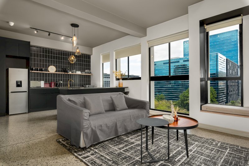 Designed for both leisure and business travellers, the apartment features a sleek open-plan layout and access to excellent building amenities, including a rooftop pool and 24-hour security.