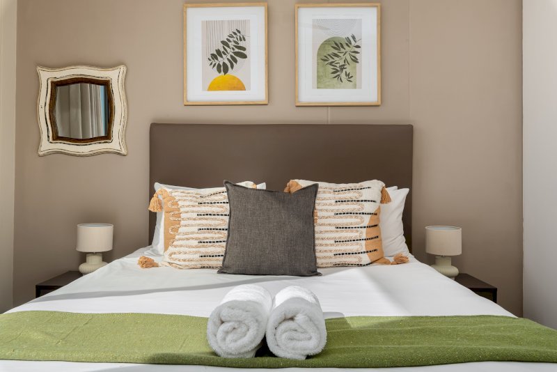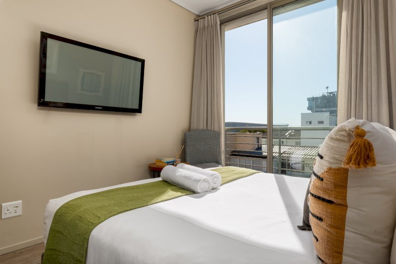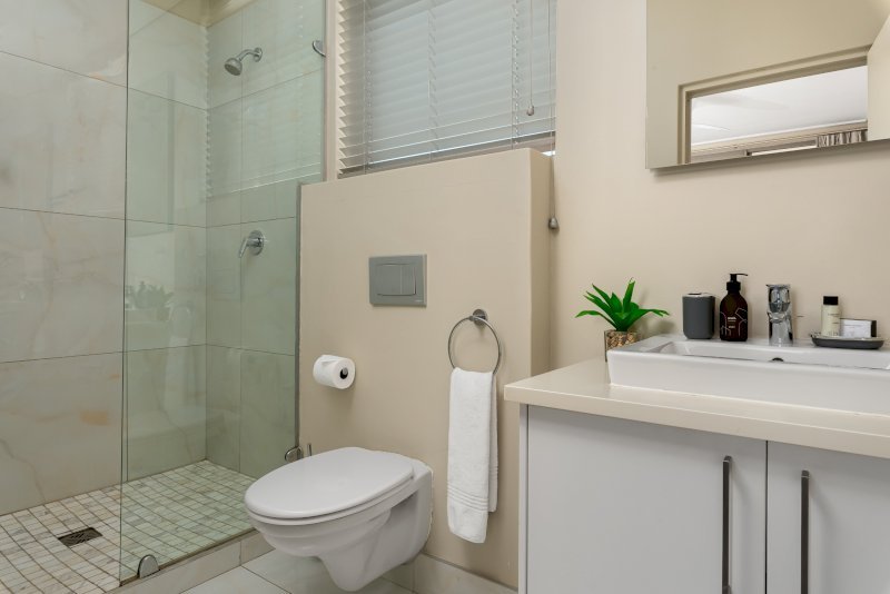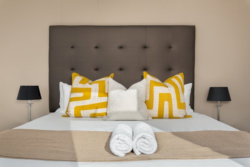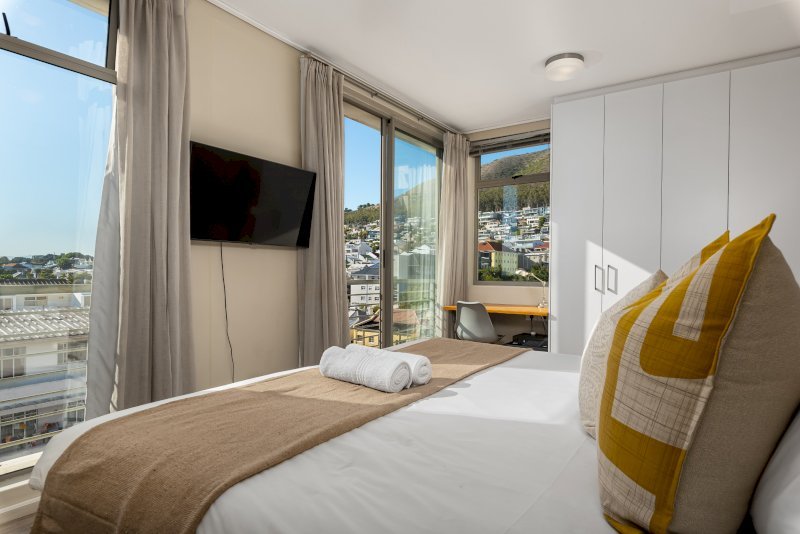 Wind down and relax in the in one of the two bedrooms. The master is furnished with  a comfy King Size bed, ample cupboard space, a TV for private viewing and a dedicated work desk that’s perfect for catching up on some work while enjoying the serene views on Signal Hill. The master also has an ensuite bathroom with a shower over bath. The second bedroom , just as charming with stadium views , ample ample cupboard space, a TV for private viewing also has an ensuite bathroom with a free standing shower and a comfy queen sized bed that perfect for enjoying a restful nights sleep