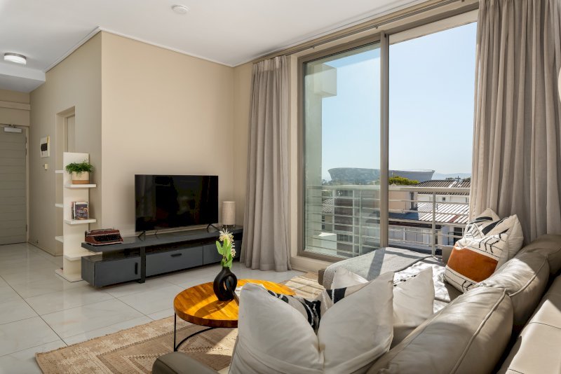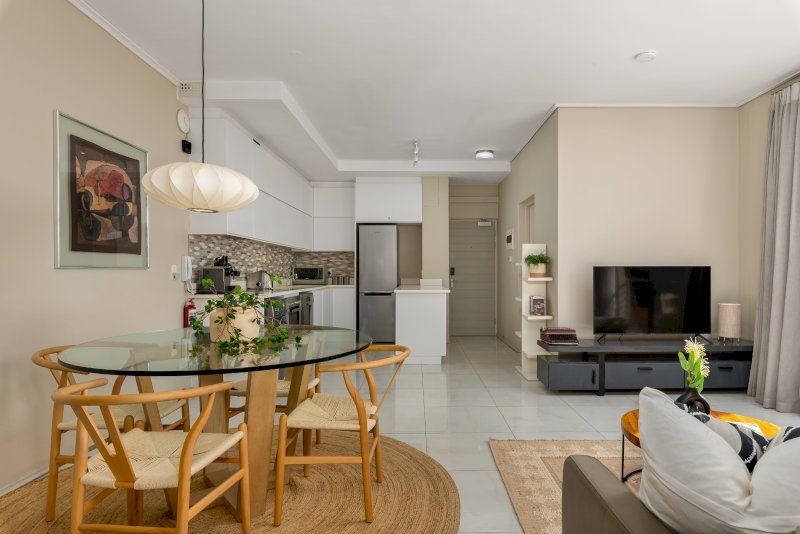 Immaculate 2 bedroom apartment in Green point, one of Cape Town’s most popular leisure district. Ideally positioned just a short walk to the V&A Waterfront, Cape Town Stadium, the popular Sea Point Promenade, and De Waterkant with its cobbled streets and colourful homes. Just a 10-minute drive to Table Mountain and the world-famous beaches of Clifton and Camps Bay. The building features a communal pool terrace with amazing views, high-end security access control, and secure covered parking.