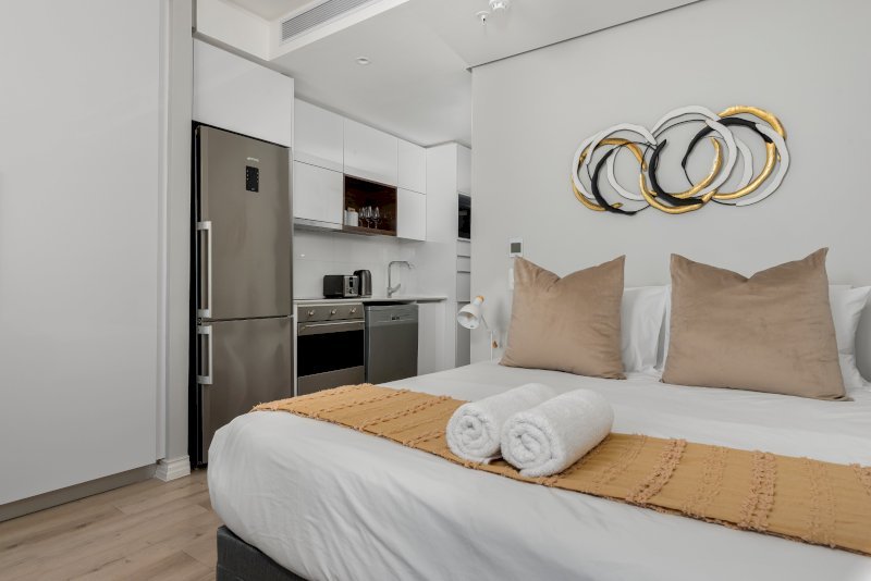 Set on the 24th floor, the apartment is thoughtfully designed to combine elegance, comfort, and functionality. The queen-sized bed offers a cosy retreat after a day of exploring, while large windows frame sweeping vistas of the city below. The modern bathroom features a walk-in shower, and the fully equipped kitchen includes everything needed for easy at-home meals, complemented by conveniences such as a dishwasher and washing machine. A Smart TV with Netflix and uncapped Wi-Fi ensure a relaxing and connected stay.
