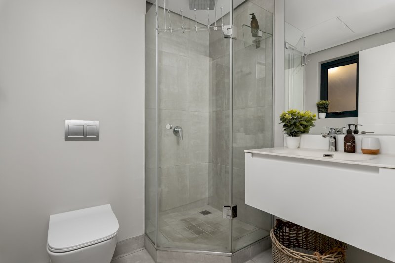 Stylish bathroom with walk-in shower