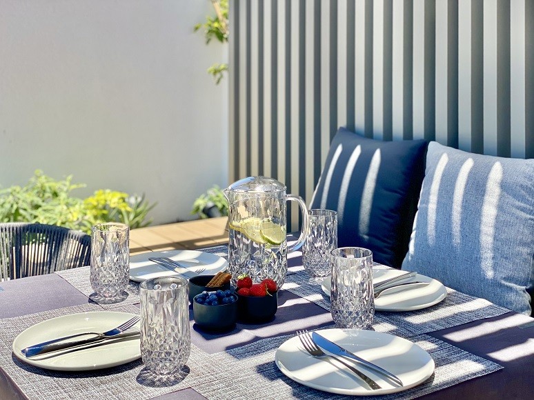 Outdoor dining terrace, gas barbecue grill