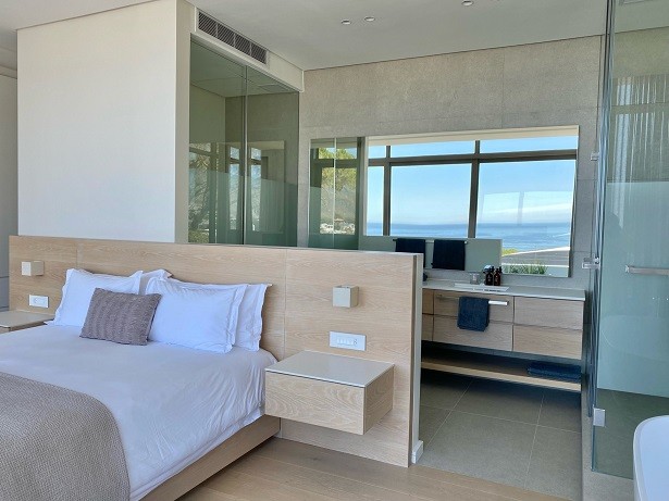 § Bedroom 2: Panoramic ocean, beach and mountain views, en-suite with walk-in