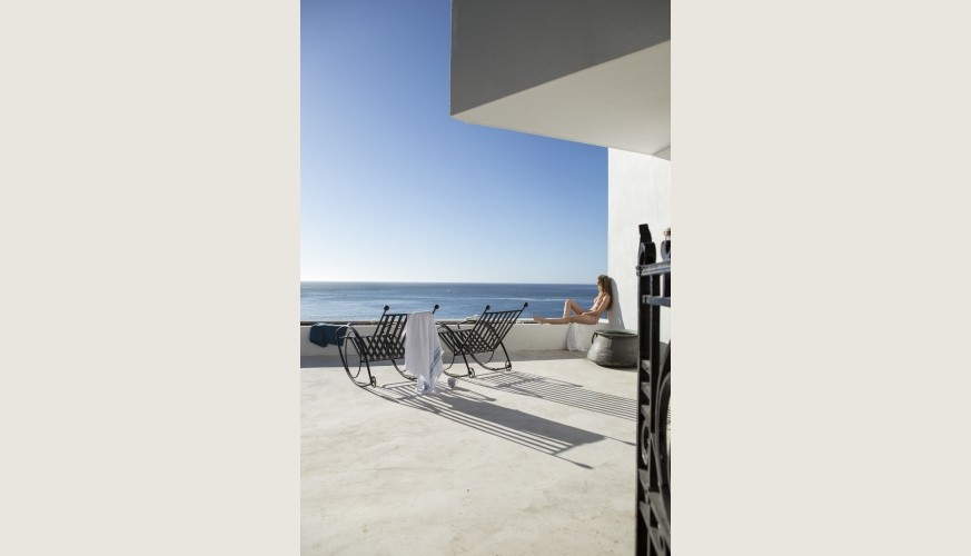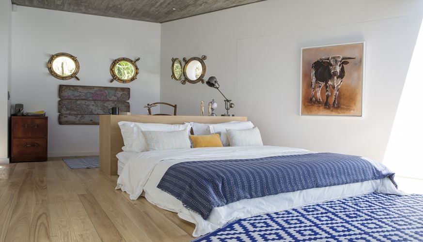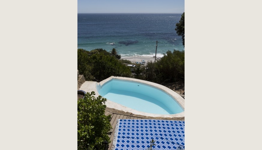 Nestled along the iconic coastal stretch of Victoria Road Ezulwini, meaning heaven, offers a serene respite, seemingly far-removed from the city’s seasonal crowds. This is a home for all seasons. Its expansive foldout glass doors open onto an ever-changing panorama of sea, sand and sky. Reclining on one of the plush sofas in the living area, you might feel as if you never want to leave this seaside sanctuary! The interior is flooded with natural light, beautifully curated in a rich beachside palette of sandy hues with a touch of something nautical. The open-plan kitchen is perfect for leisurely, late lunches with loved ones or making dinner as the sun sets over the Atlantic. The main living area spills onto a fabulously spacious deck, bordered on one side by a swimming pool, it makes for an idyllic spot to cool off. With its high ceilings and original wooden floors, this house lends itself wonderfully to modern living with a touch of old-world seaside holiday whimsy, like the delightful brass portholes salvaged from ships.