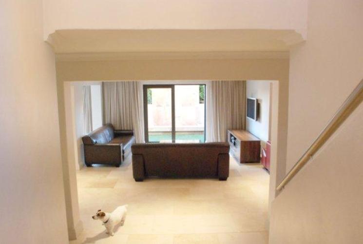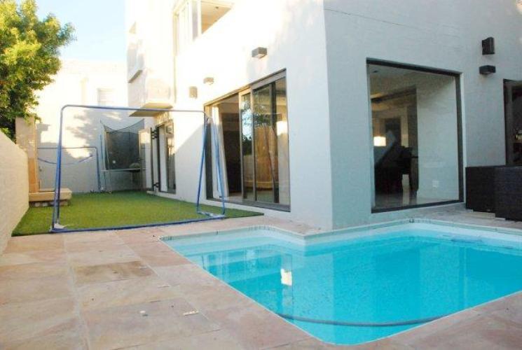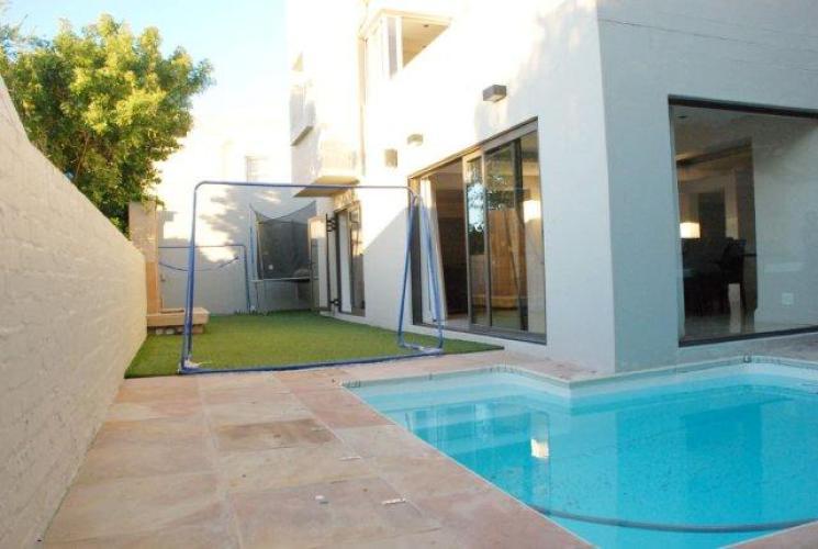 This is a 3 Bedroom townhouse house in the sought after area of Bantry Bay. The house is comprised of two levels. Upstairs there are three bedrooms with views of the sea from the upstairs balcony. Downstairs there is an open plan fully fitted modern kitchen. There is also a dining room, lounge and study area. The outside comprises of a lovely grass area with a pool which can be covered for kids. As well as an outside sitting area.