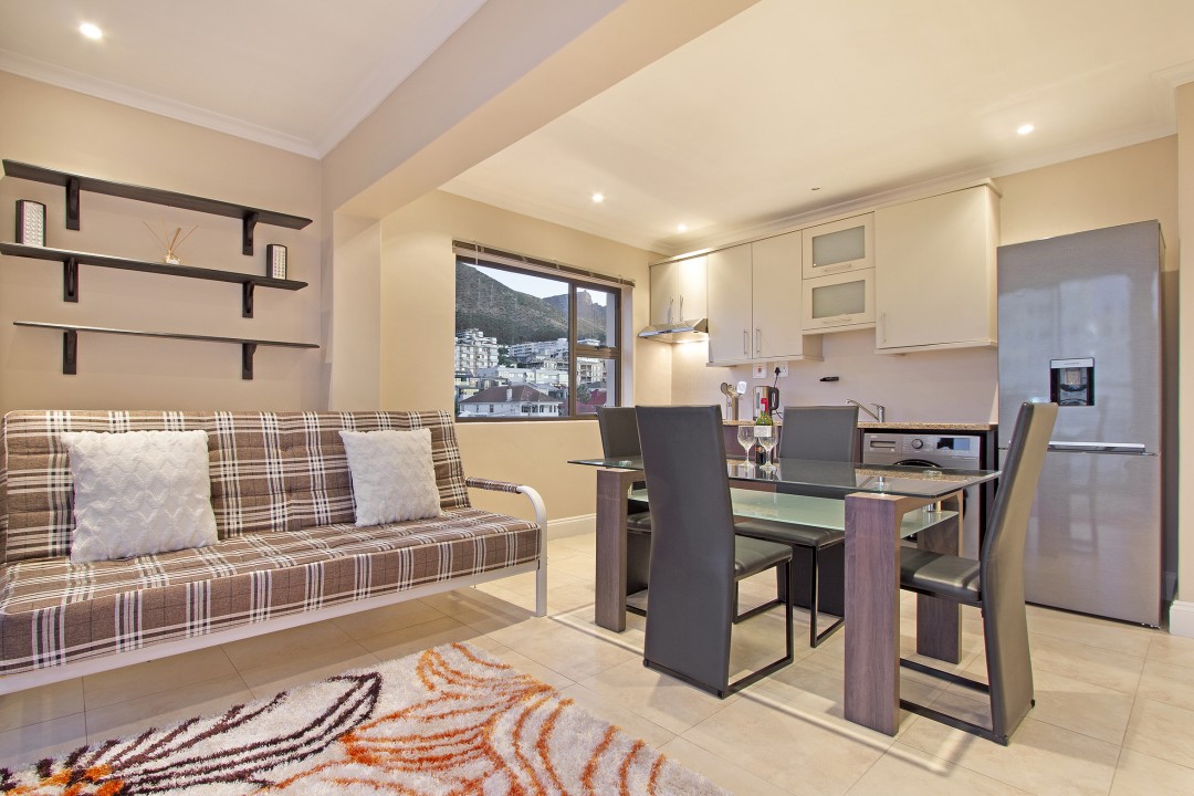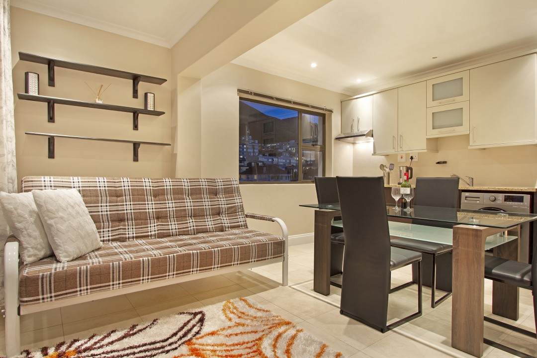 At the foot of Lion’s Head is this perfect one bedroom set high up in a sought-after apartment building. The apartment provides natural light and is situated on one of Sea Point’s main roads, giving it splendid views of this popular suburb. A huge bonus is that the apartment is within walking distance to the promenade, malls, restaurants, and coffee shops.