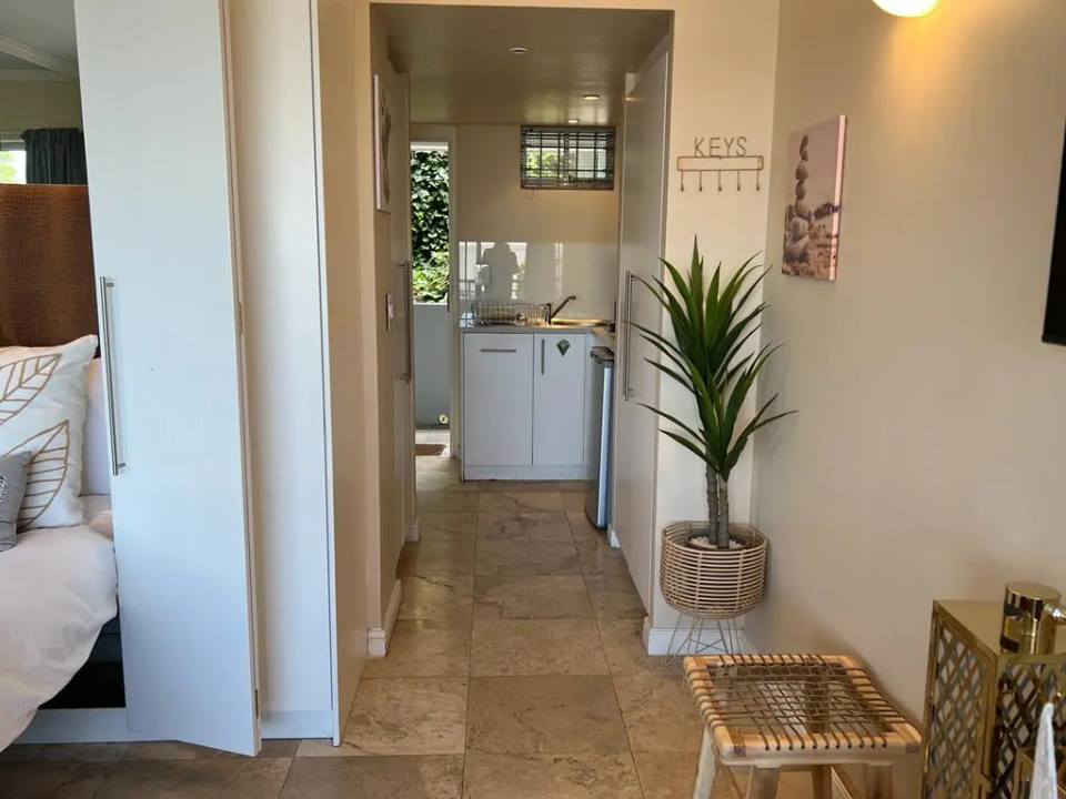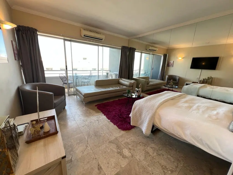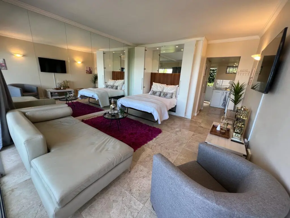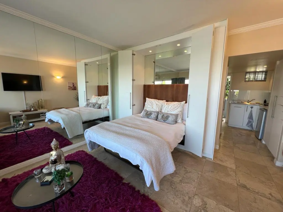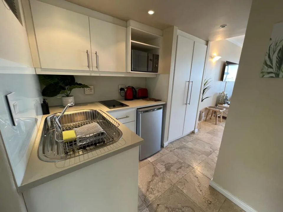 Kick back and relax in this calm, stylish studio space. This apartment is a secure self-catering apartment located in Clifton. The kitchen is fully equipped with a 2-plate stove, a microwave, a bar fridge, a toaster, a kettle, cutlery, and crockery. Access to Wi-Fi is available. The balcony has a partial sea view and Clifton 1st beach is just a 2 min walk away.