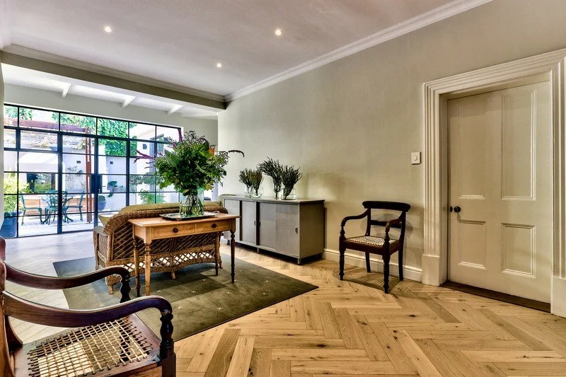 Built-in 1903, this four-bedroomed villa is situated on two erven, elevated from the street level, and offers spectacular Table Mountain and city views.