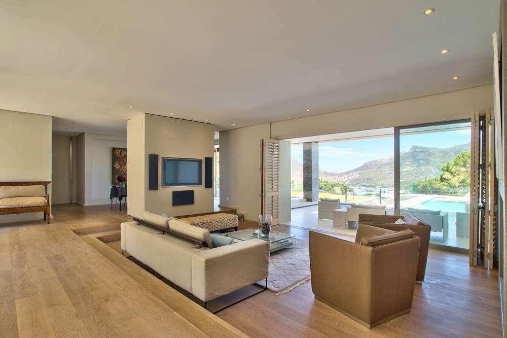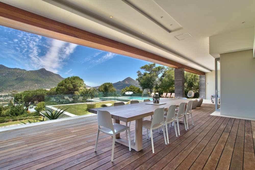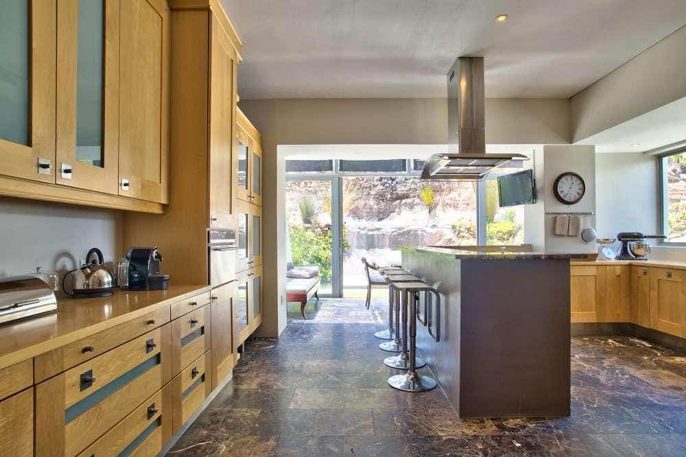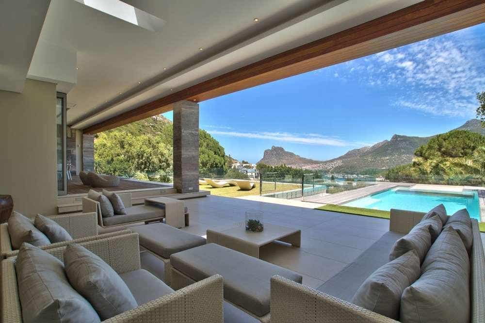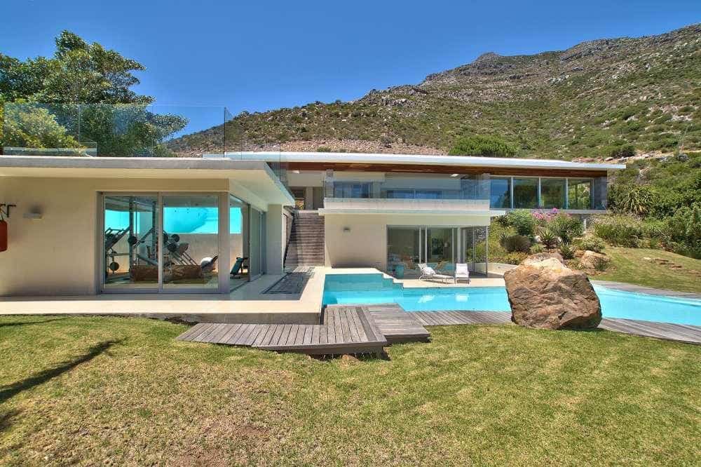 Flightdeck Houtbay is a spacious villa situated on the mountain side of Hout bay Hillcrest area. The villa is around 1000 sqm with 3 swimming pools (one heated and one natural pool). 5 en/suite bedrooms, large fully equipped kitchen, conservatory with breakfast table (seating 8), including a TV.