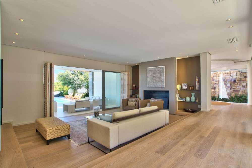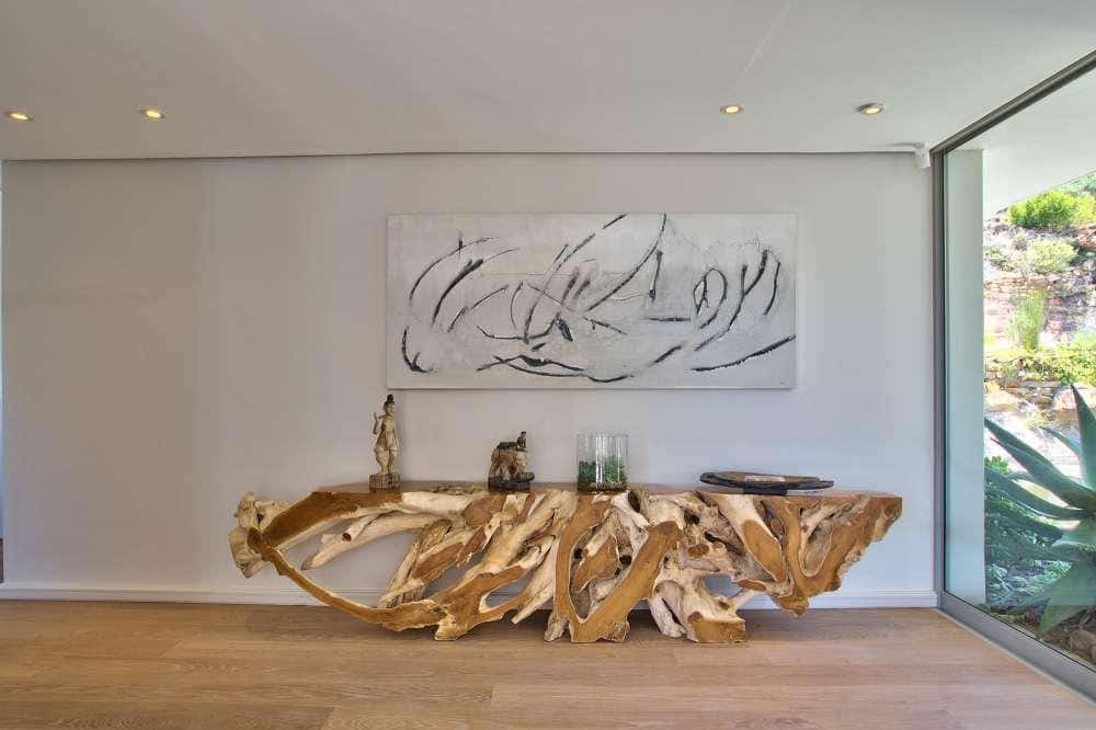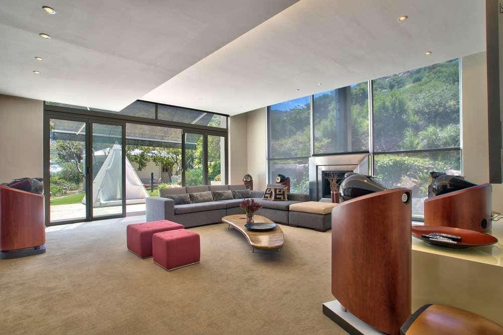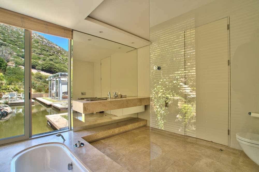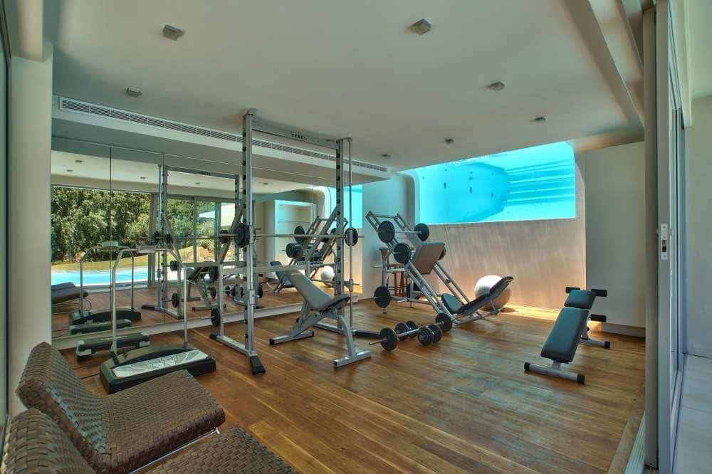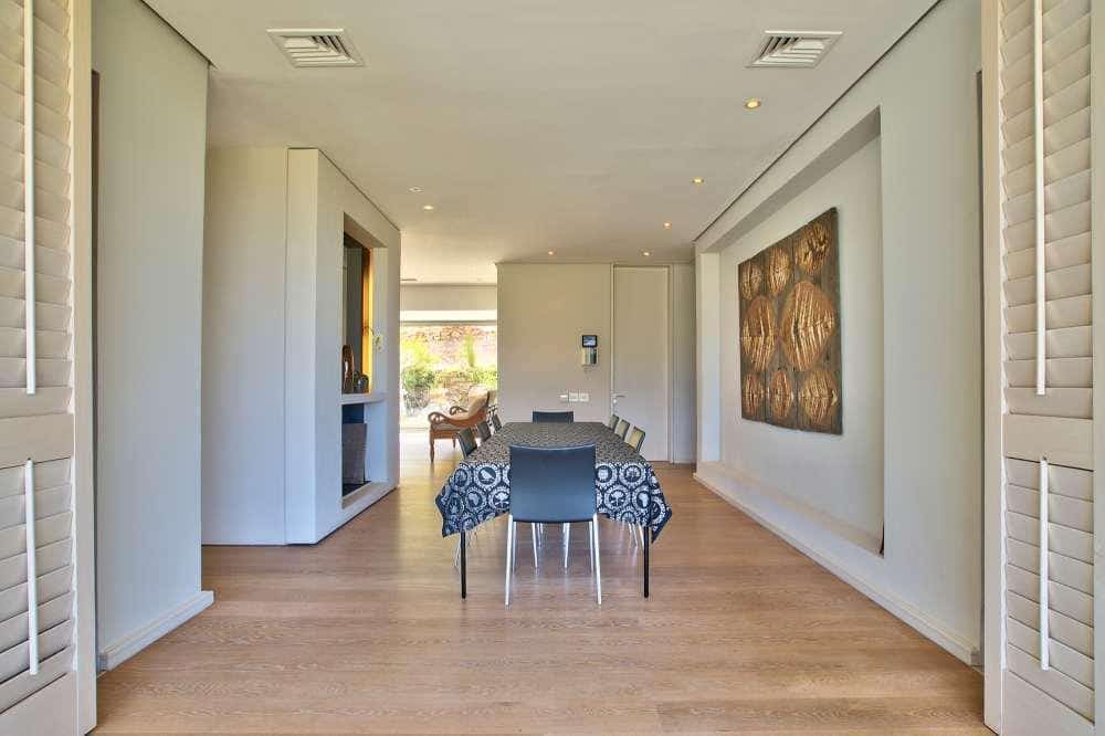The villa also comprises a TV/cinema room. Air-conditioning throughout the house. A gym and an enclosed indigenous mountain, with stone pathways, for your enjoyment. Parking for 5-6 cars, Alarm system, Unlimited internet and dstv. Fully equipped laundry and housekeeping 6 days a week included.