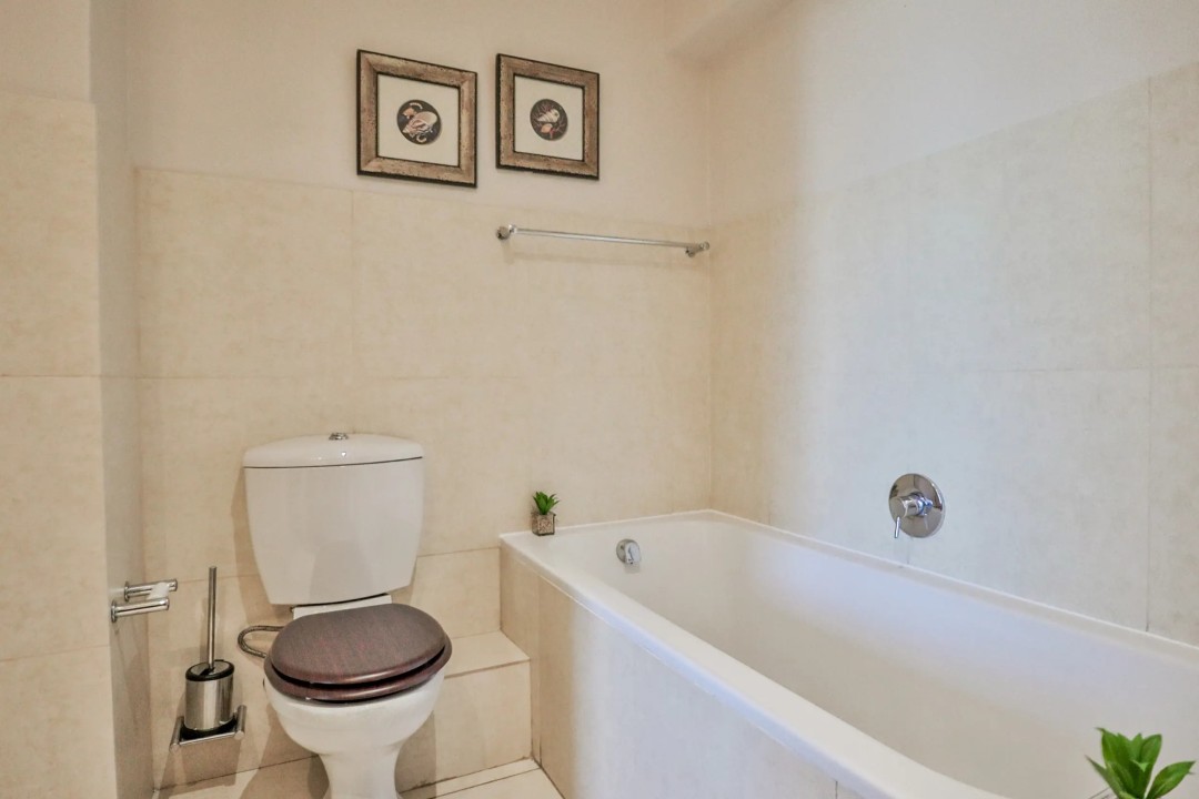 All bedrooms have temperature-controlled fans, and the living area has air conditioning in addition to a fan. Is equipped with a 6-seater dining table and a large comfortable L-shaped lounge suite with a flat-screen TV, Blu-ray player and DSTV (hotel bouquet)