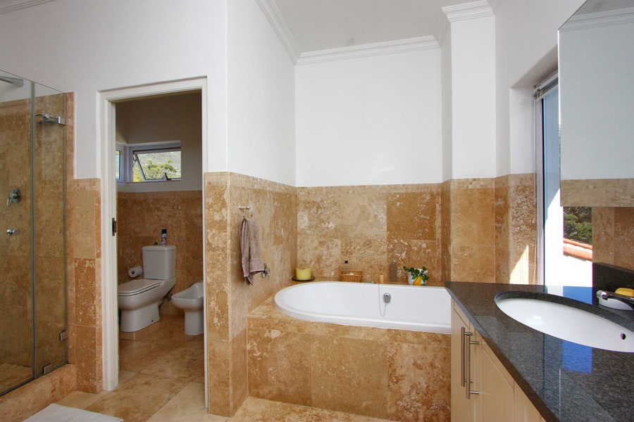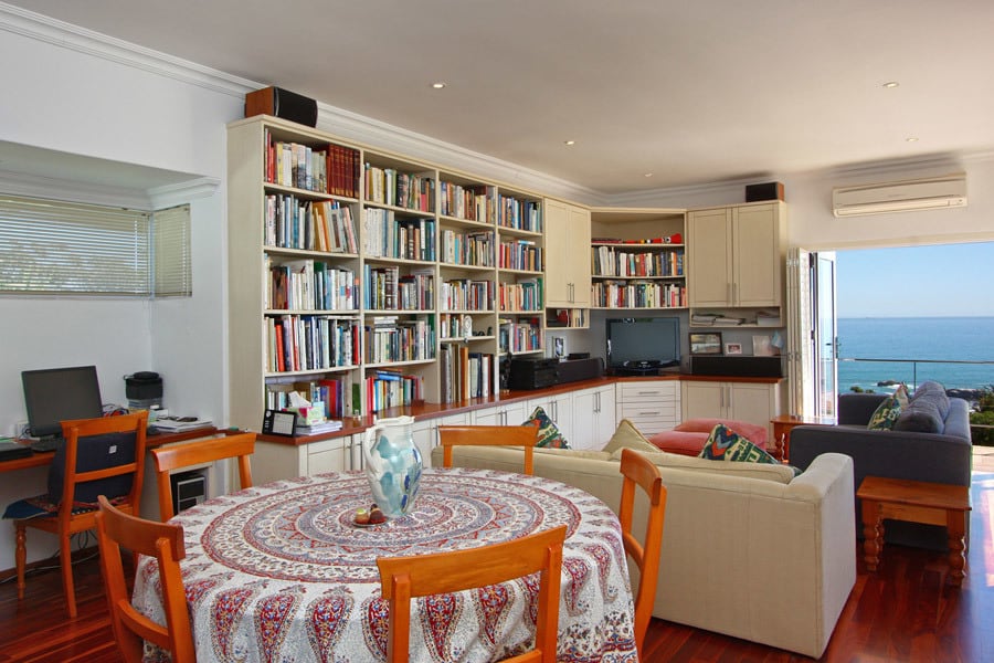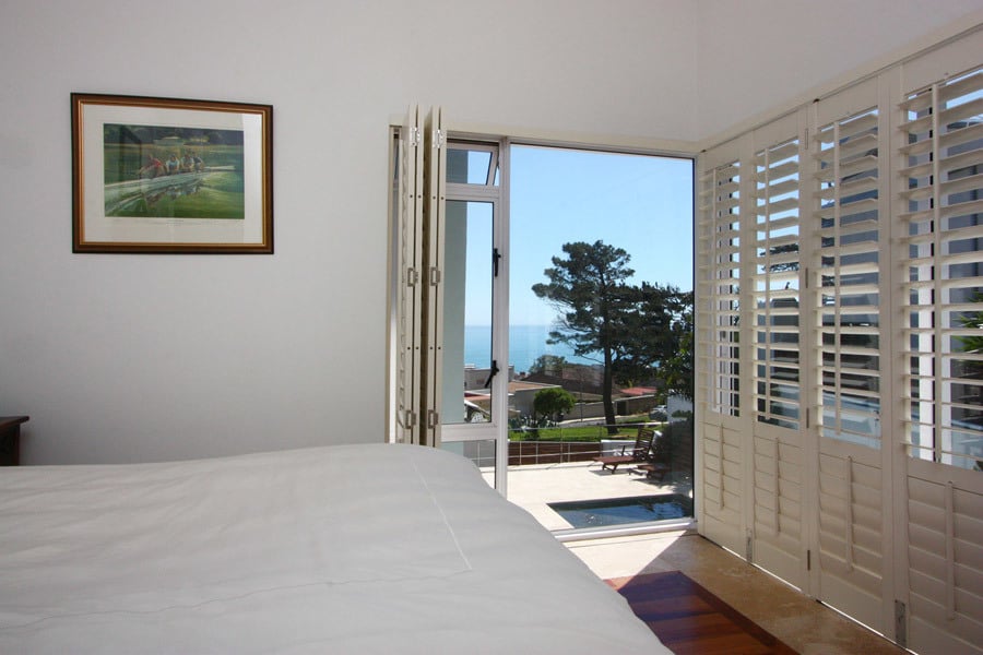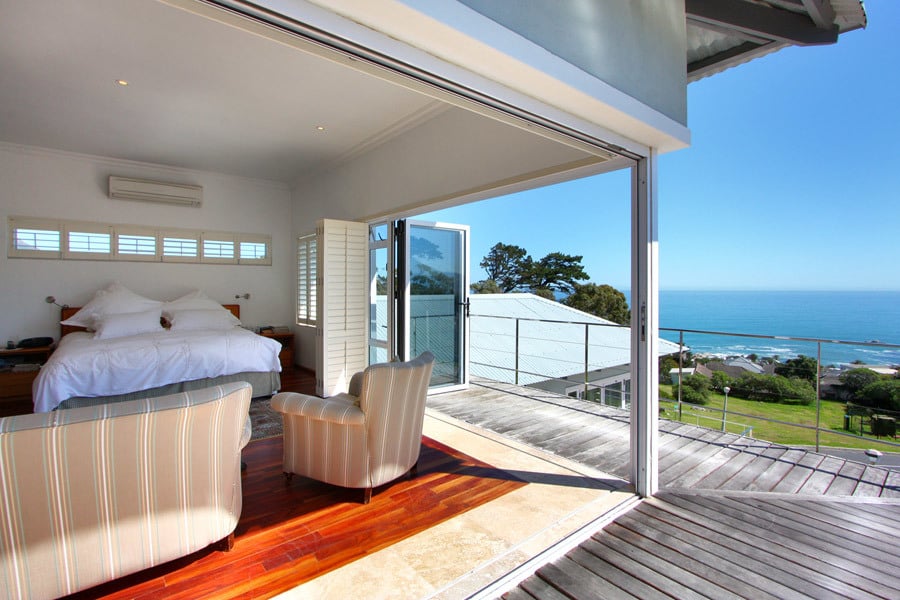 The master bedroom is in the corner on the upper level and has lovely sea and Lions head views. There are 2 more bedrooms on this level whilst the 4th bedroom is on the lower level and leads out onto a private deck with mountain views.
