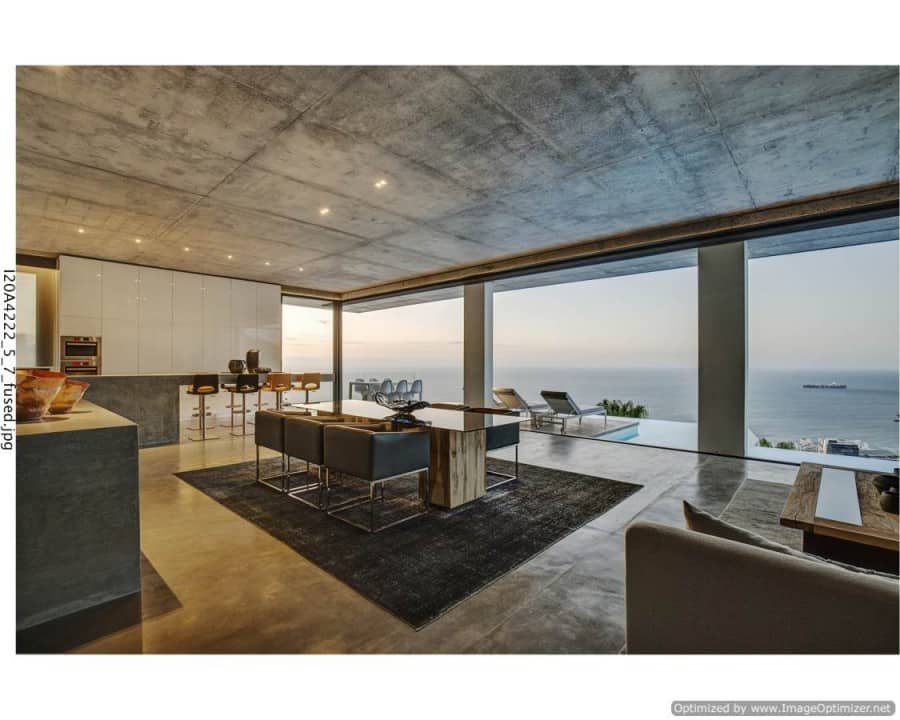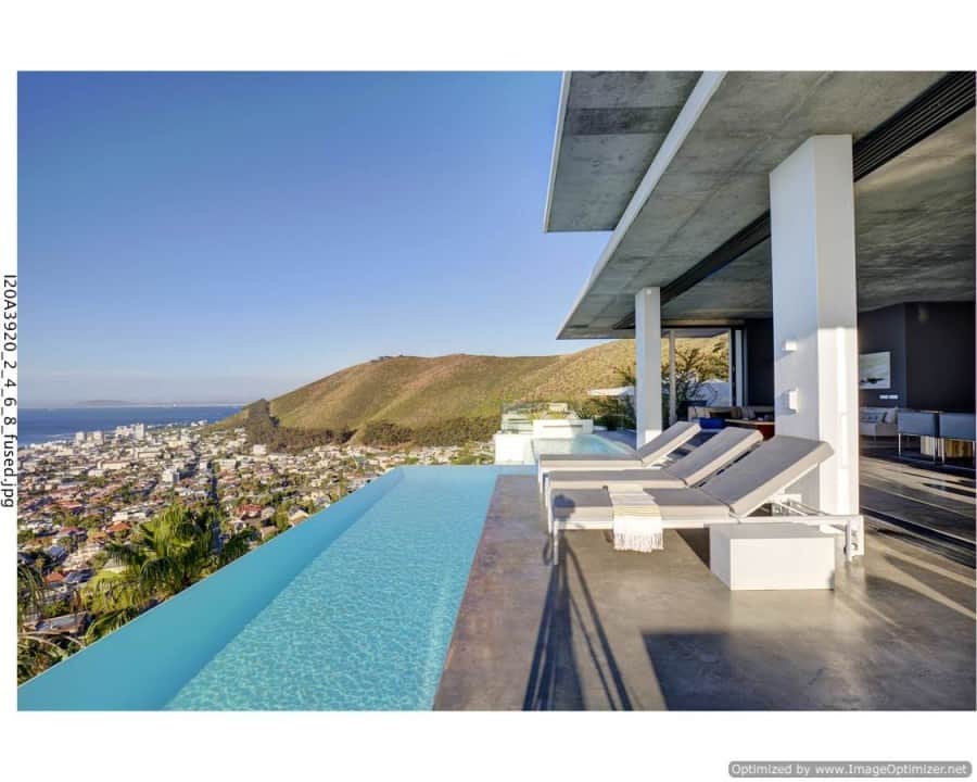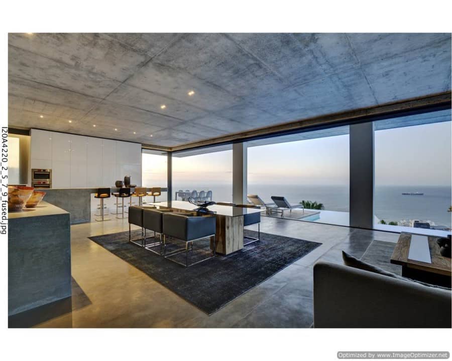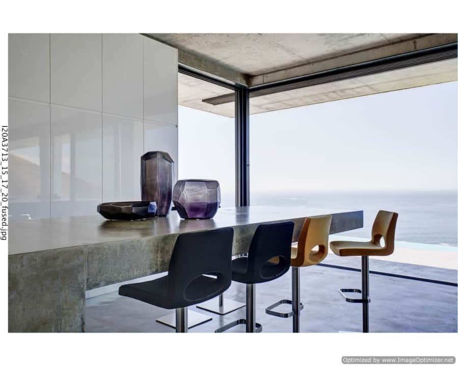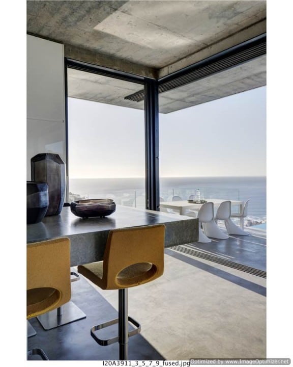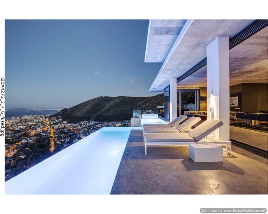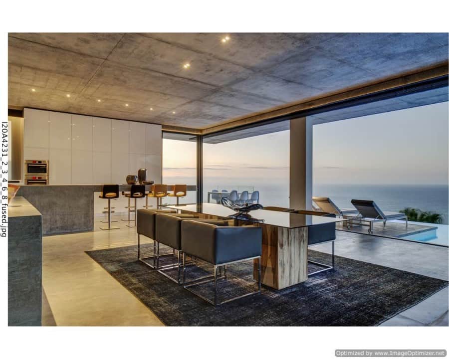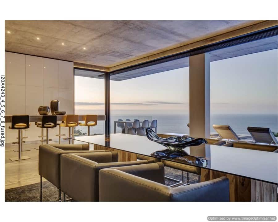 The beautiful outdoor living area is ideal for savoring the Atlantic sun and panoramic views of the coast and sea. Luxuriate in the villa’s infinite swimming pool and sunbathe on stylish loungers. Kindle the barbeque in the afternoon and enjoy a delicious braai lunch. Open the retractable glass wall and sip delicious cocktails in the sumptuous lounge.