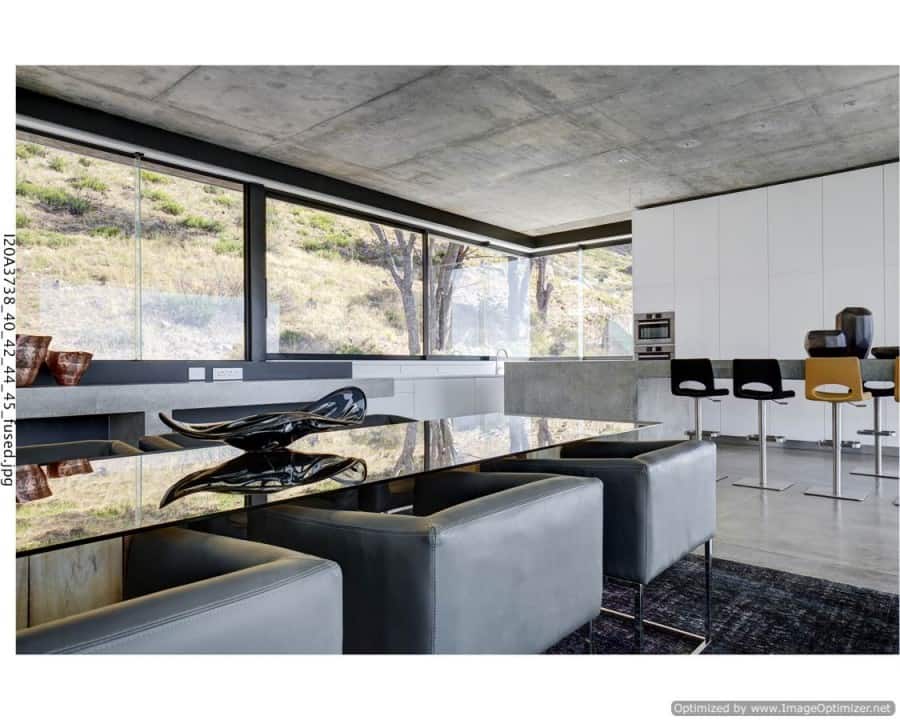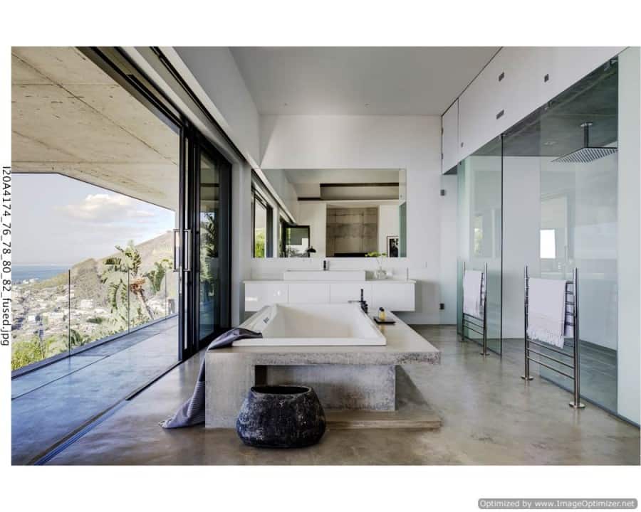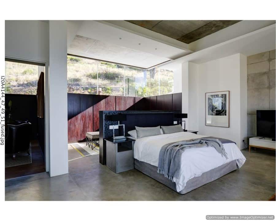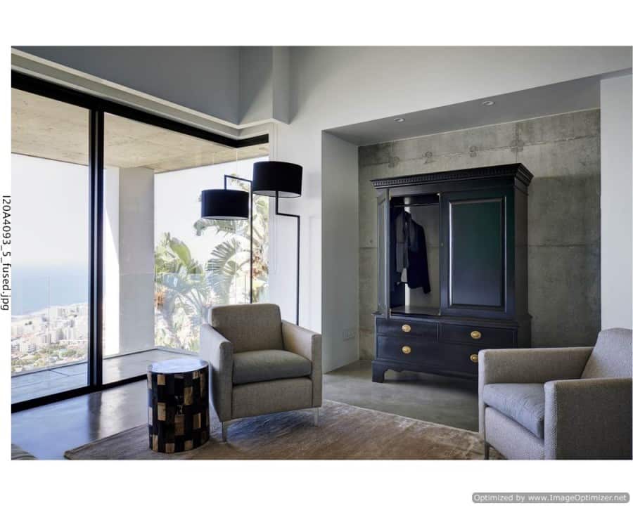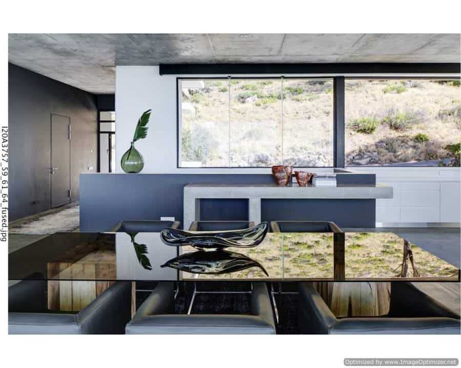 The open wall creates a seamless, indoor/outdoor space for cocktails parties or relaxing evenings together. Select a bottle from the large wine cellar and savor it at the sunset hour. Relax by the fire while your private chef cooks a delectable meal and gather around the beautiful dining table for a momentous feast. The kitchen is fully equipped and includes a lovely breakfast bar. The minimalist elegance of the villa’s design accentuates the extraordinary natural beauty of the western Cape Peninsula. The villa also features an office, exercise room, and top-shelf security system.