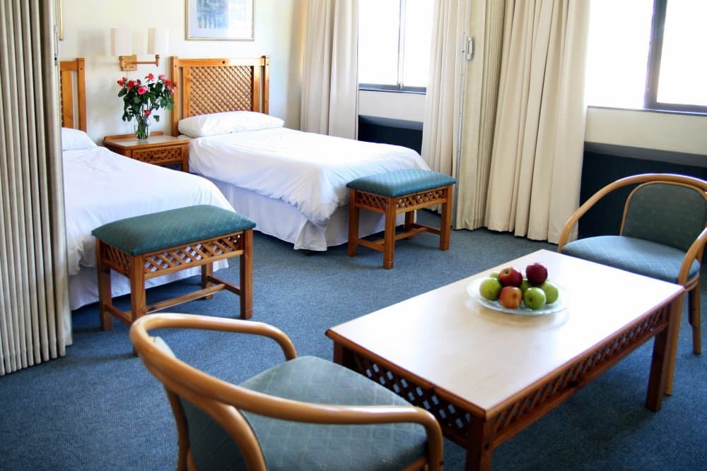 The apartments consist of either a double bed or two single beds; a spacious lounge area with a television and MNET; a dining area and fully equipped kitchenette. A separate bathroom consists of a bath with an overhead shower. On request, a sleeper couch can be arranged that can accommodate an additional two guests.