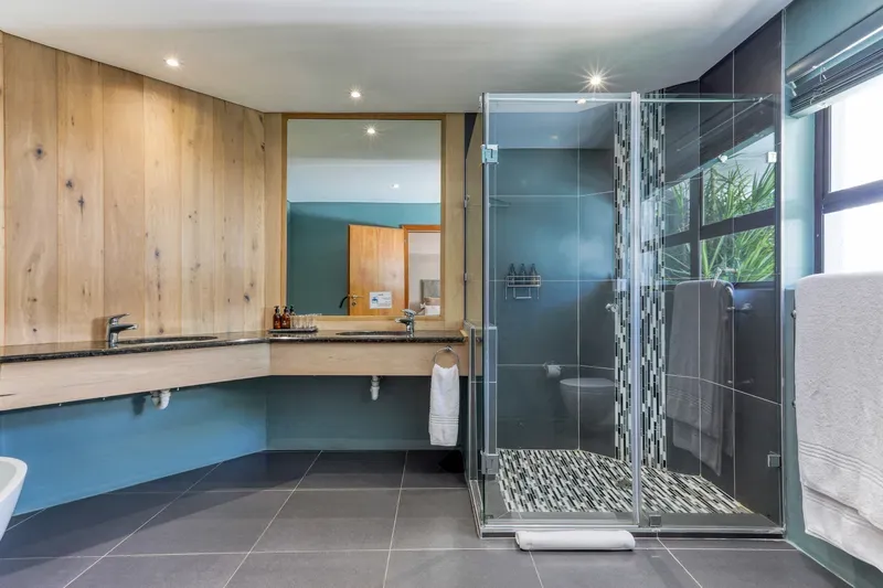 Ten well-appointed, modern suites all have balconies facing the sea or the private tranquillity of the landscaped gardens with koi ponds, leading the eye along the sculptured lines of the architecture and internal gardens.