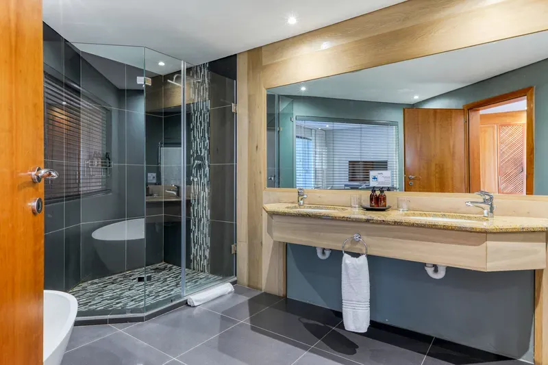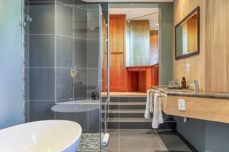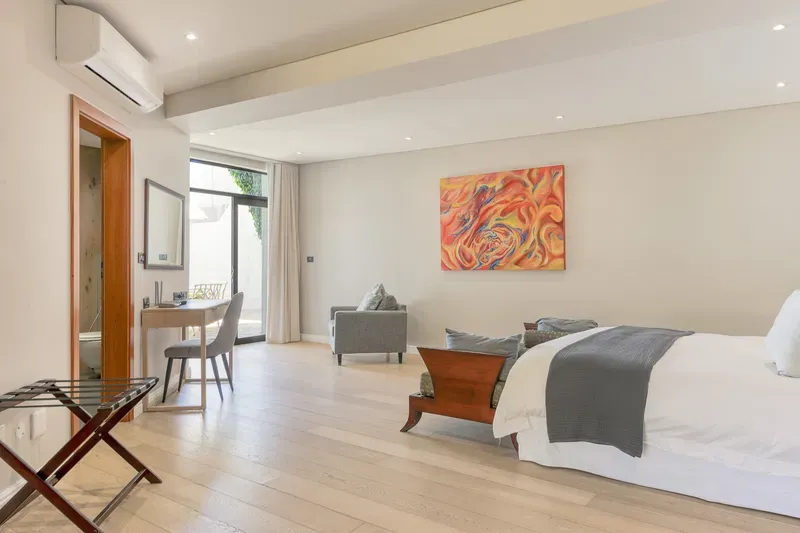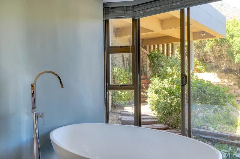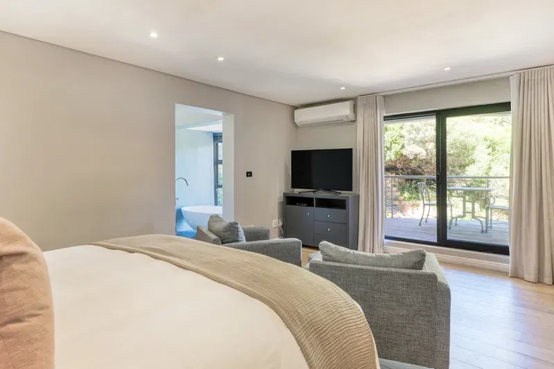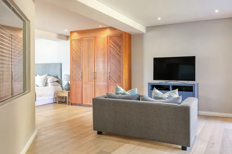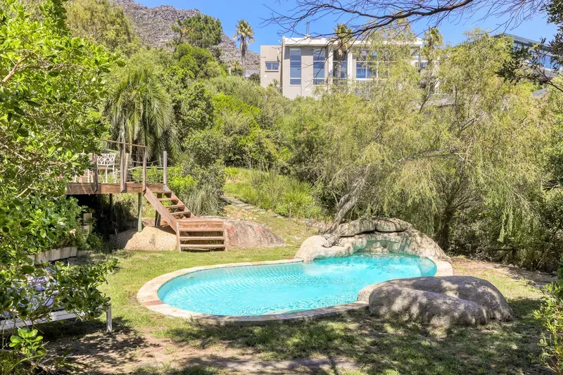 The spacious 4 levelled Gembsok Villa is situated at the Southern top of coveted Camps Bay against the Twelve Apostles Mountain range which forms part of majestic Table Mountain; one of The 7 Wonders of the World. This fully staffed house offers magnificent sea and mountain views with two swimming pools, groomed garden and a koi pond.