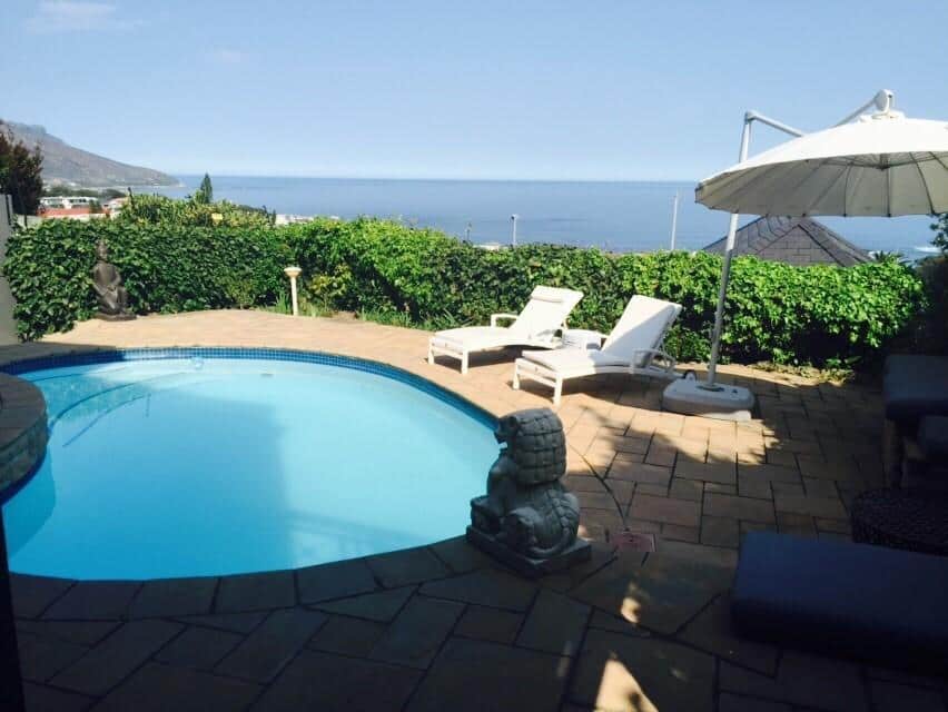 Geneva Views is a large double storey house on Geneva Drive in Camps Bay. The holiday home has 3 bedrooms and 2 bathrooms with 1 en-suite. The house has a pool and gorgeous sea and mountain views from all the rooms except the kitchen.