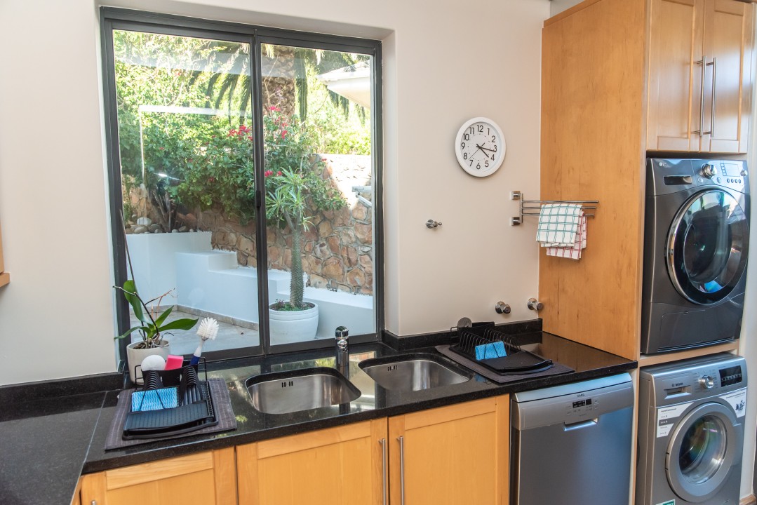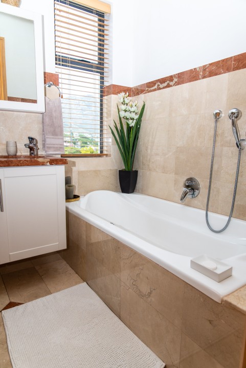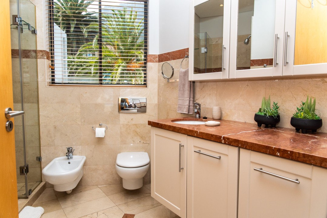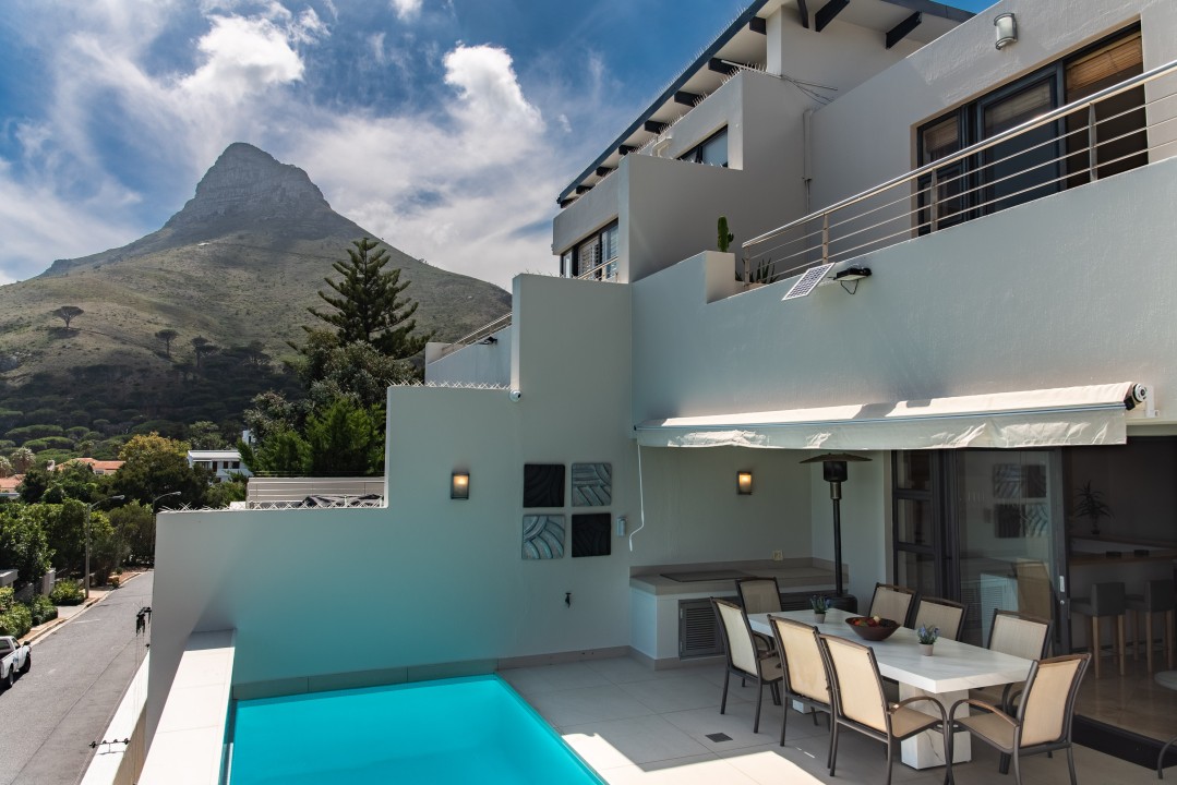 The property is fully secured with an alarm, armed response, and 24hr ADT security post on the corner. The property is fully secured with an alarm, armed response, and 24hr ADT security post on the corner. This stunning villa is perfect for corporate stays as well as families. Only a 10 min drive to the CBD & 2min drive to Camps Bay beach & promenade with its vibey cafes & shops. MyCiti bus stop is on the corner near the security guard/hut.