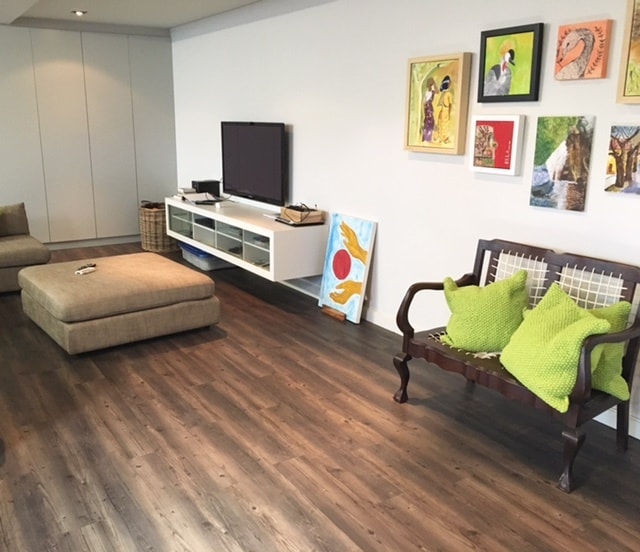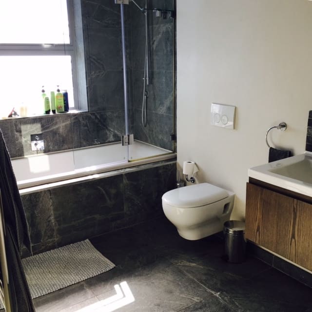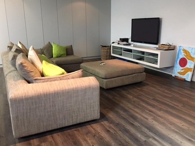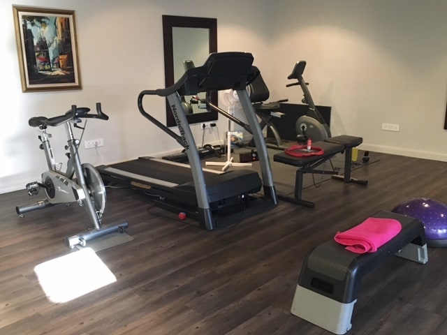 The basement of the house is a large chill area, complete with a well equipped gym, large comfortable sofas and big screen TV.