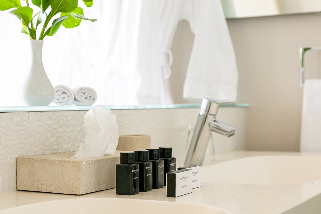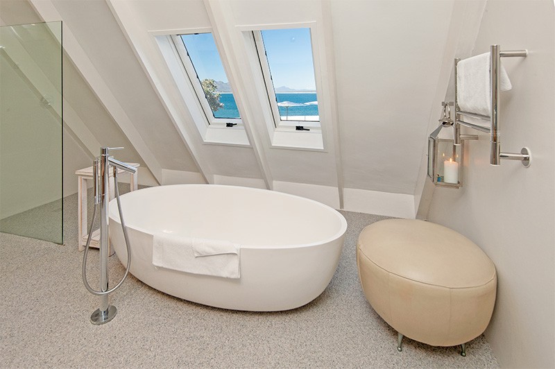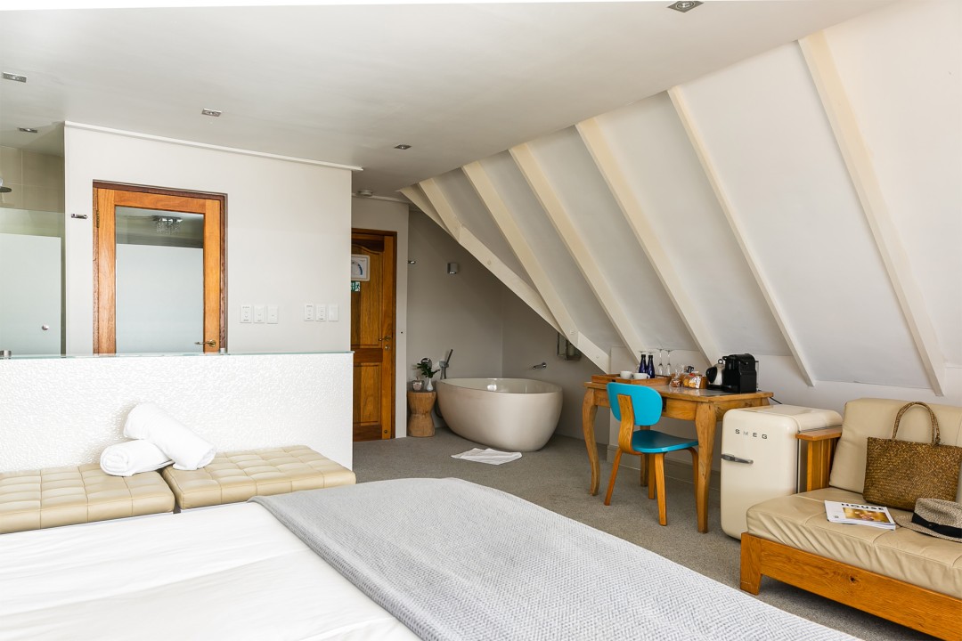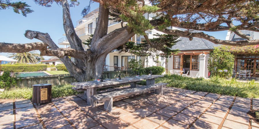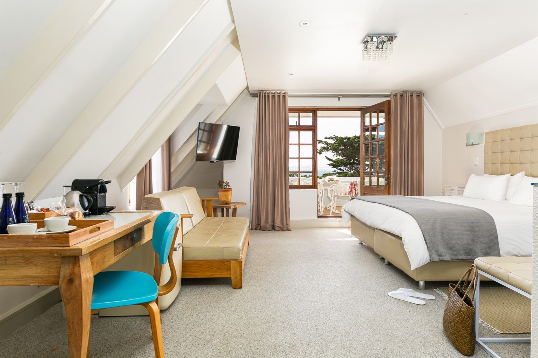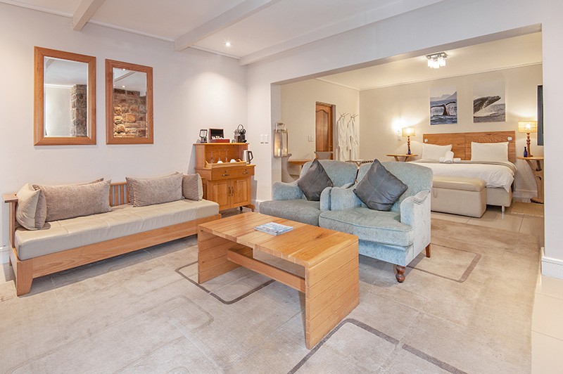 Rooms on the ground level have been designed with glass doors maximising the view and a natural flow out to the infinity pool and garden. Each room has a patio with garden furniture. Rooms on the upper levels are equally breathtaking, with Juliet balconies offering spectacular views of the ocean and the world-famous whale-watching bay.