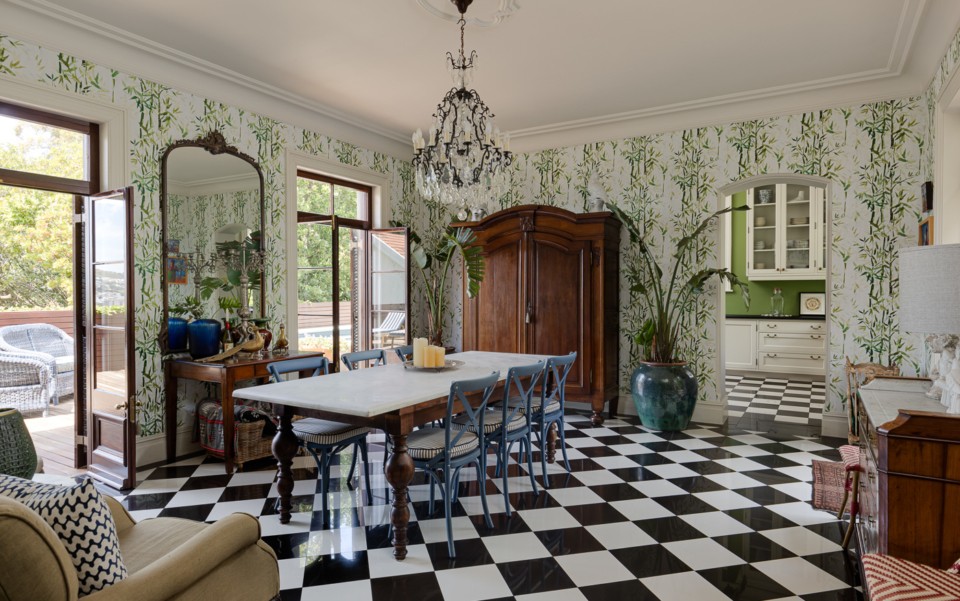 - Breakfast room adjacent to the kitchen with 8-seater table, French doors leading to pool patio